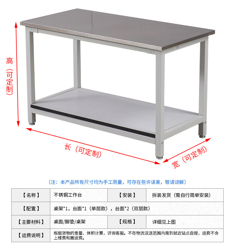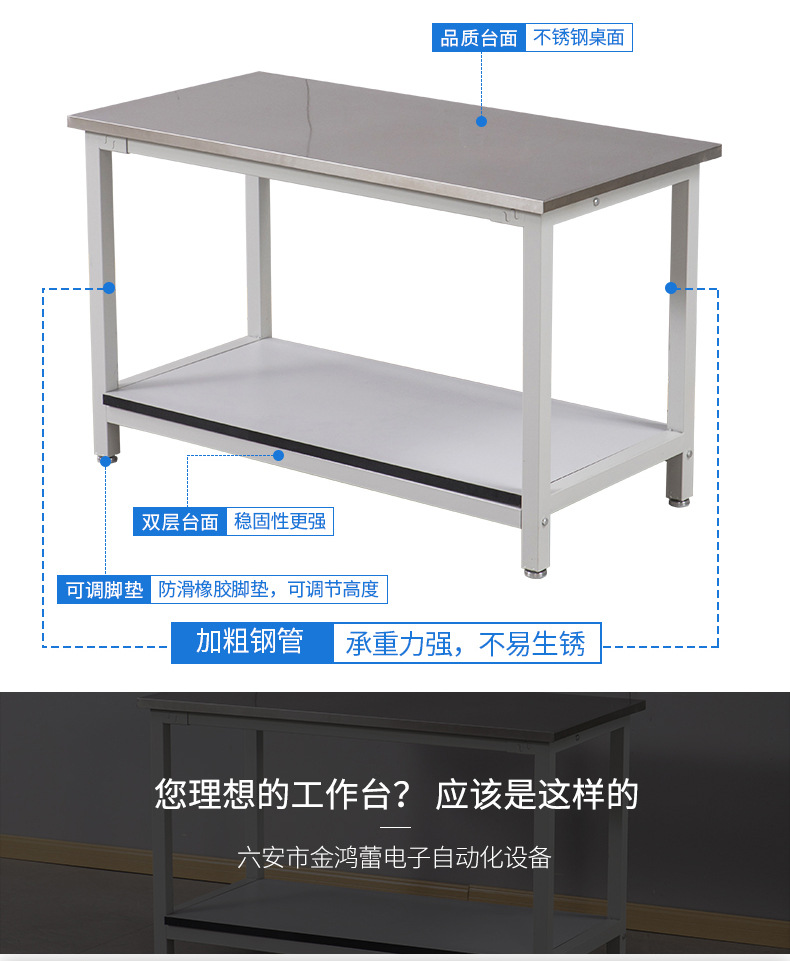 加厚不锈钢台面工作台双层实验台车间操作台检测维修工厂车间桌子,批发价,价格:50,厂家直销,加厚不锈钢台面工作台双层实验台车间操作台检测维修工厂车间桌子,免费拿样。