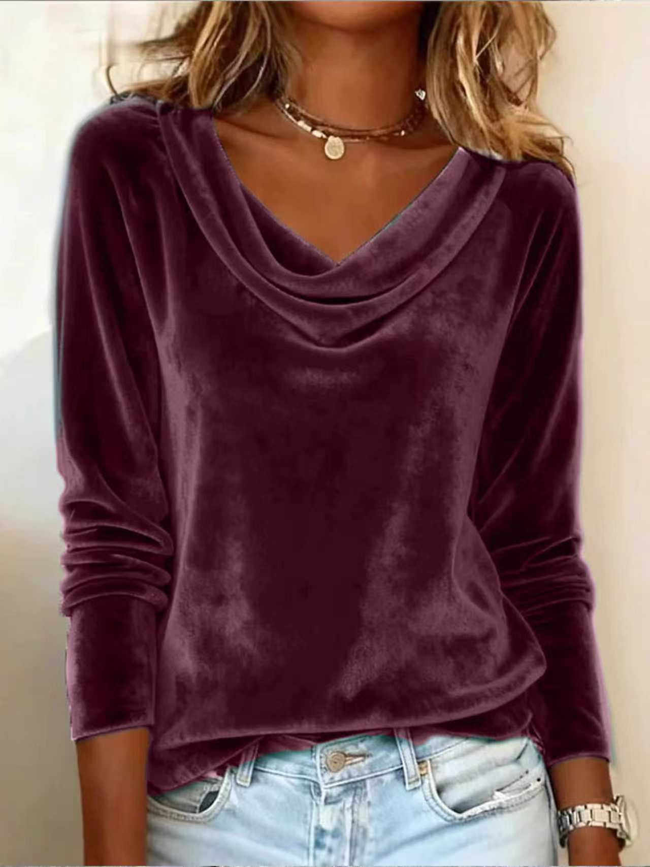 2025欧美跨境亚马逊独立站时尚女装新款纯色荡领长袖性感丝绒T恤,批发价,价格:26,厂家直销,2025欧美跨境亚马逊独立站时尚女装新款纯色荡领长袖性感丝绒T恤,免费拿样。