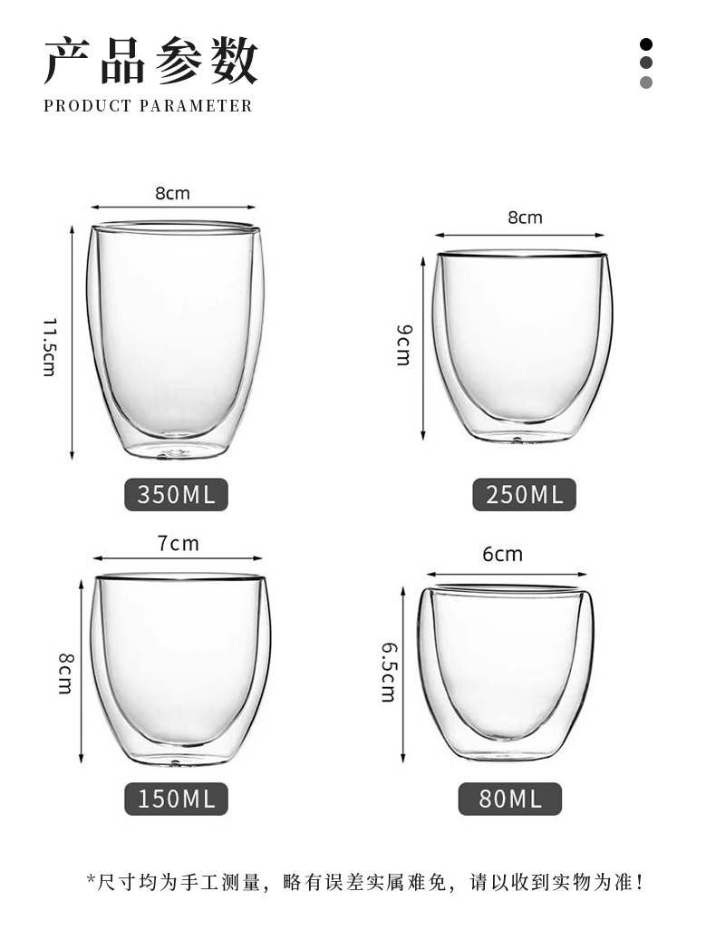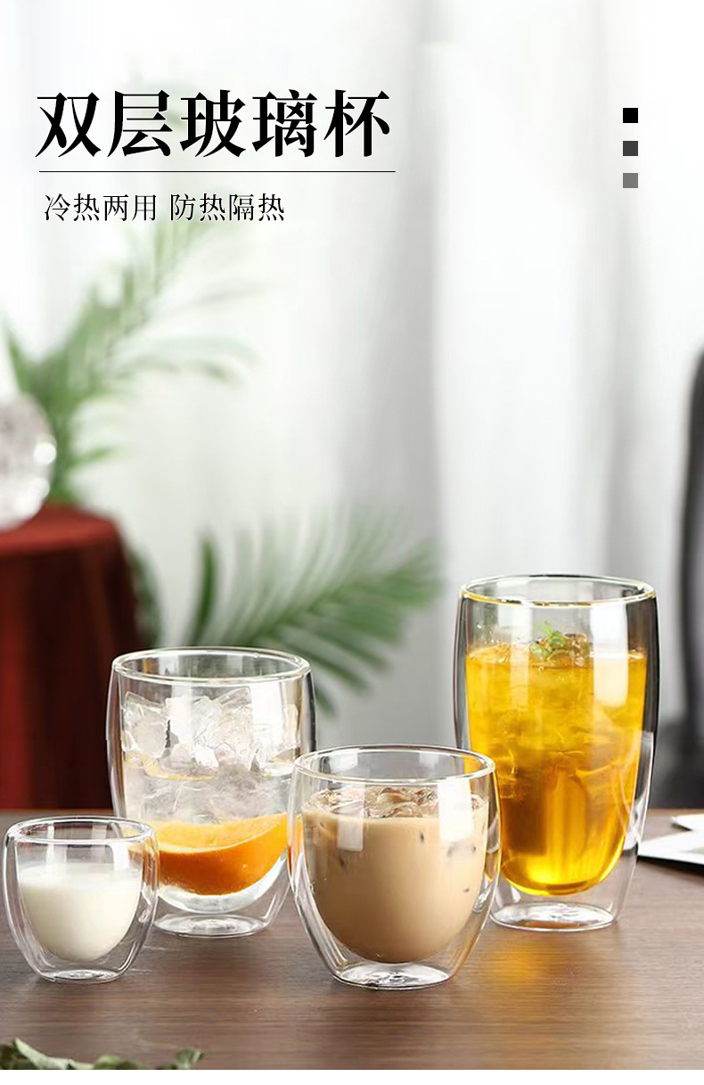 双层高硼硅玻璃杯透明耐热家用果汁杯咖啡杯办公室双层泡茶玻璃杯