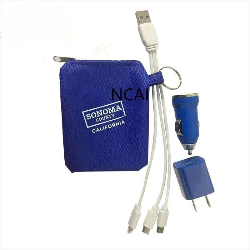 礼品充电器头二合一套装插头一拖三充电线适用于外贸礼品可印logo