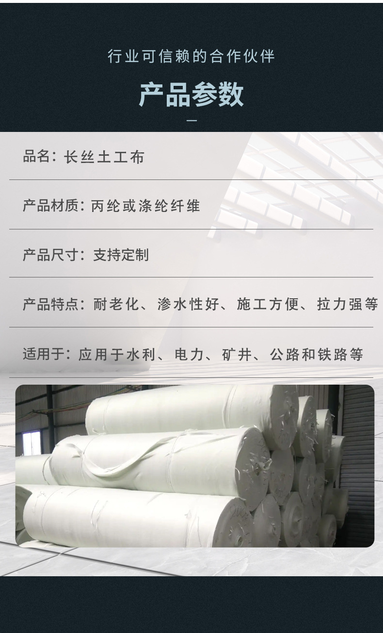 新国标长丝土工布工程混凝土加筋反虑聚酯纤维道路防尘长丝土工布