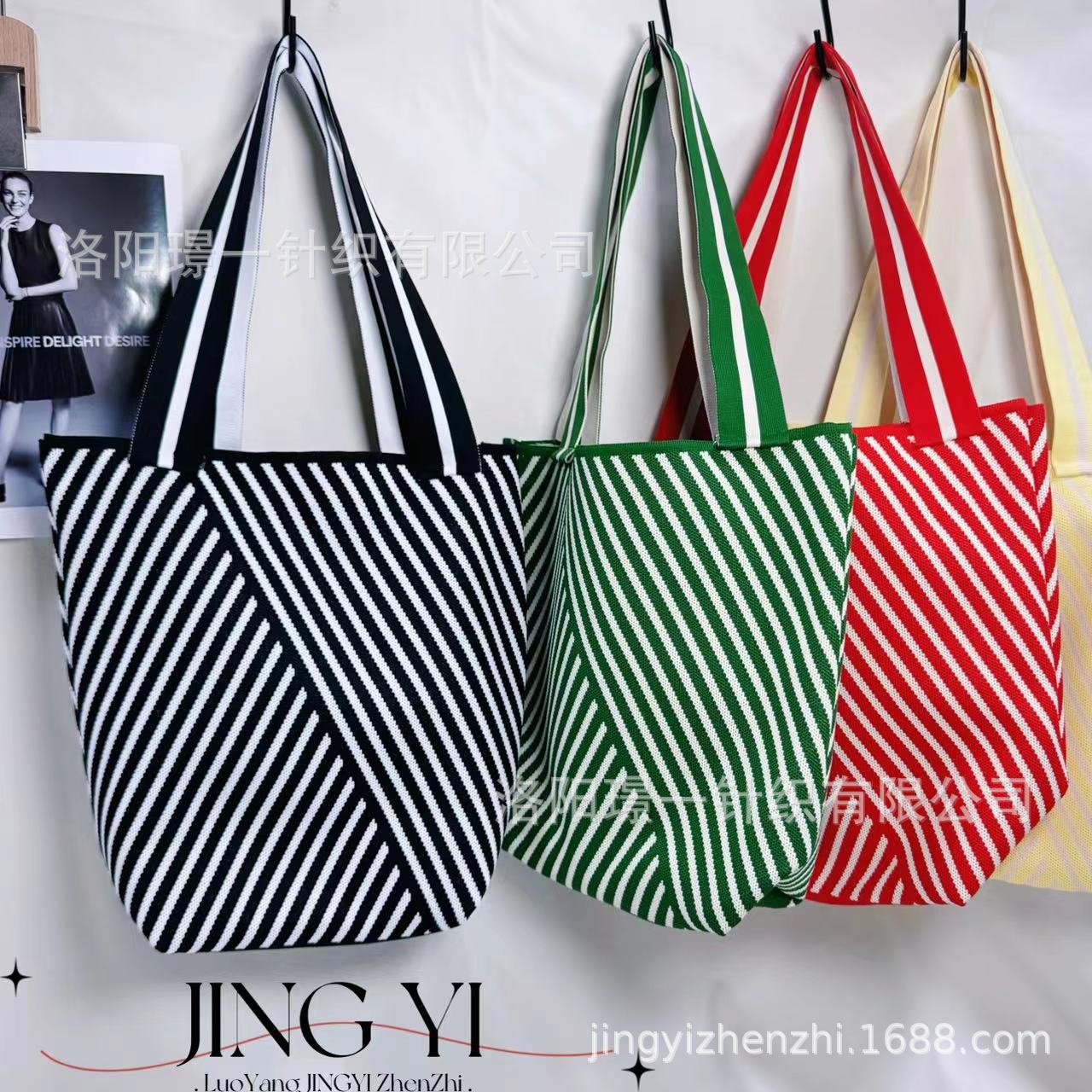 时尚条纹撞色单肩水桶包四季百搭简约针织大容量托特包手拎包都市,批发价,价格:11,厂家直销,时尚条纹撞色单肩水桶包四季百搭简约针织大容量托特包手拎包都市,免费拿样。