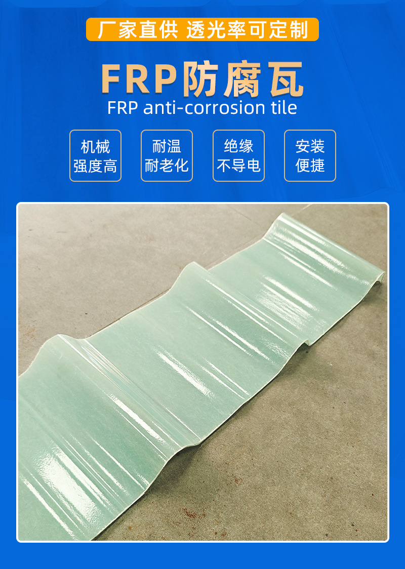 FRP玻璃钢防腐瓦停车棚雨棚隔热瓦化工厂耐酸碱屋顶装饰瓦定 制