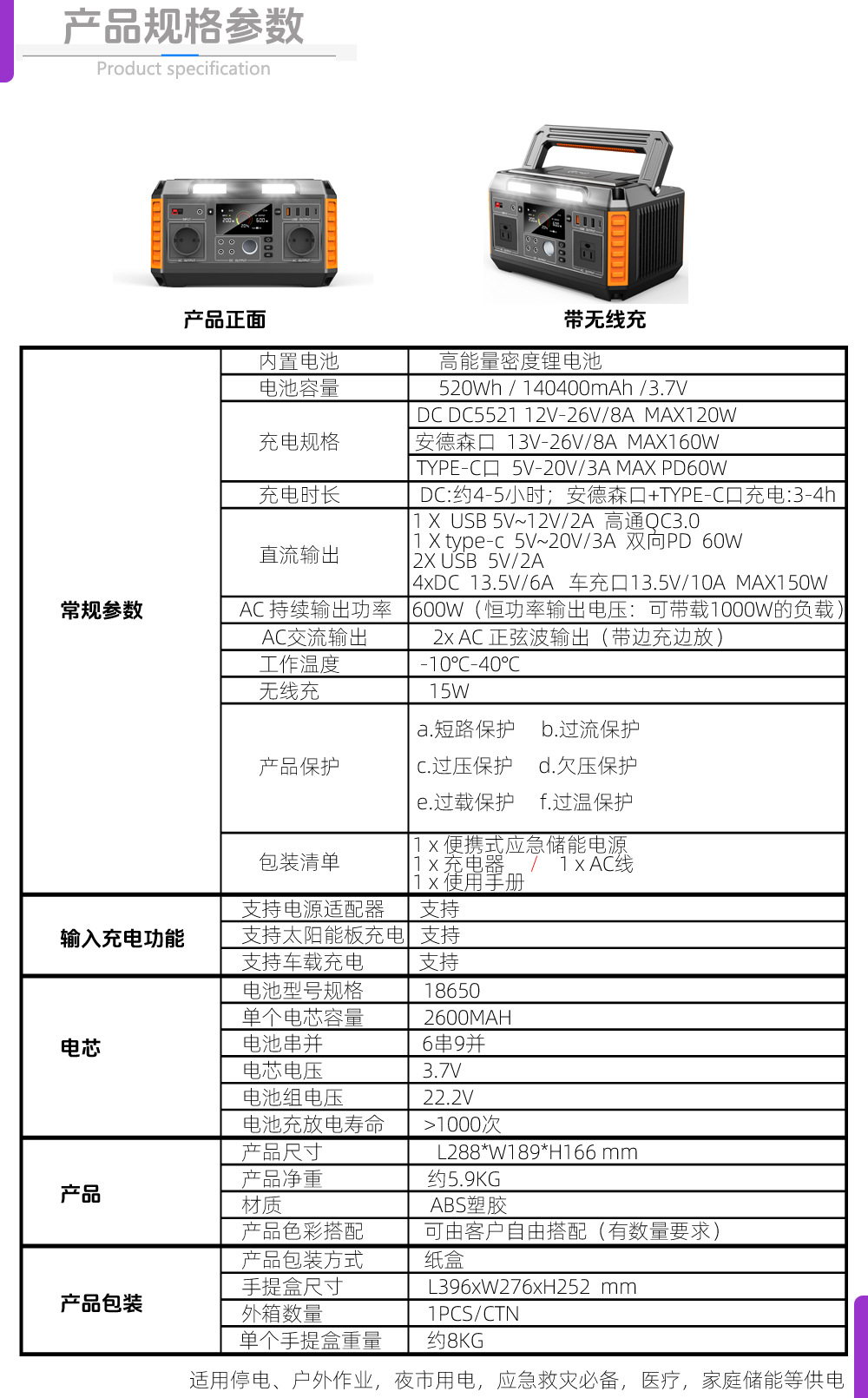 600W爆款户外储能应急 升维功率1000W家庭备用电站太阳能充电电源