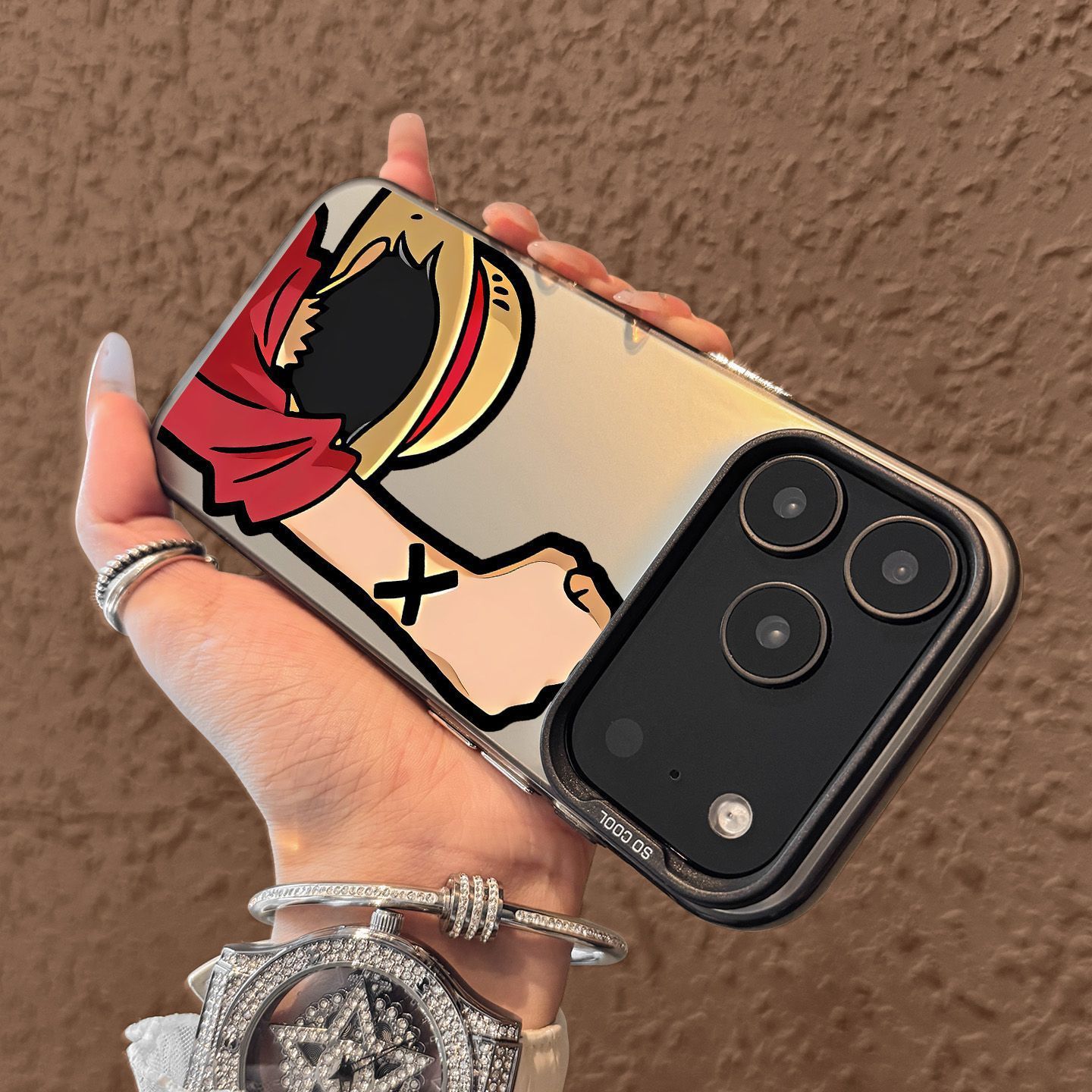 励志路飞适用苹果17Pro手机壳iPhone16/15/14/13彩银壳防摔保护