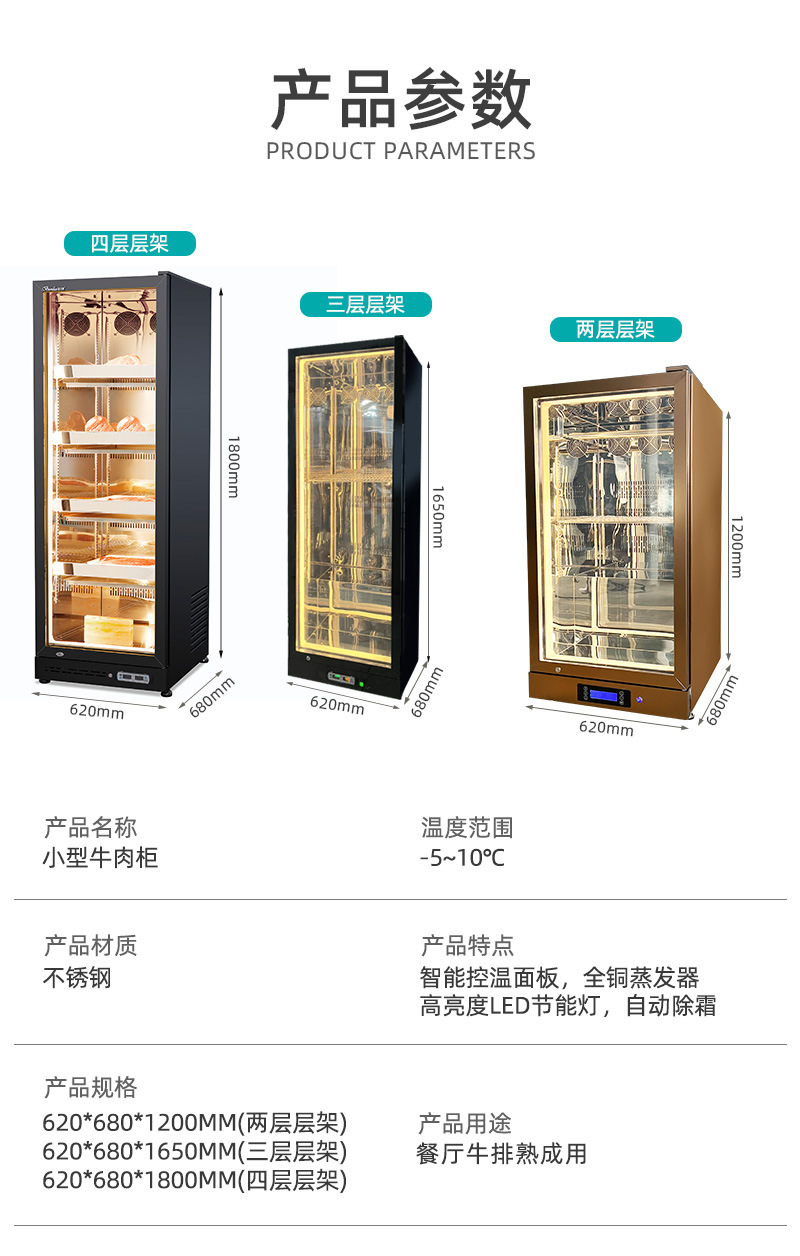 冰力鲜牛肉柜商用西餐牛排柜烤肉店湿式排酸柜小型展示柜保鲜柜