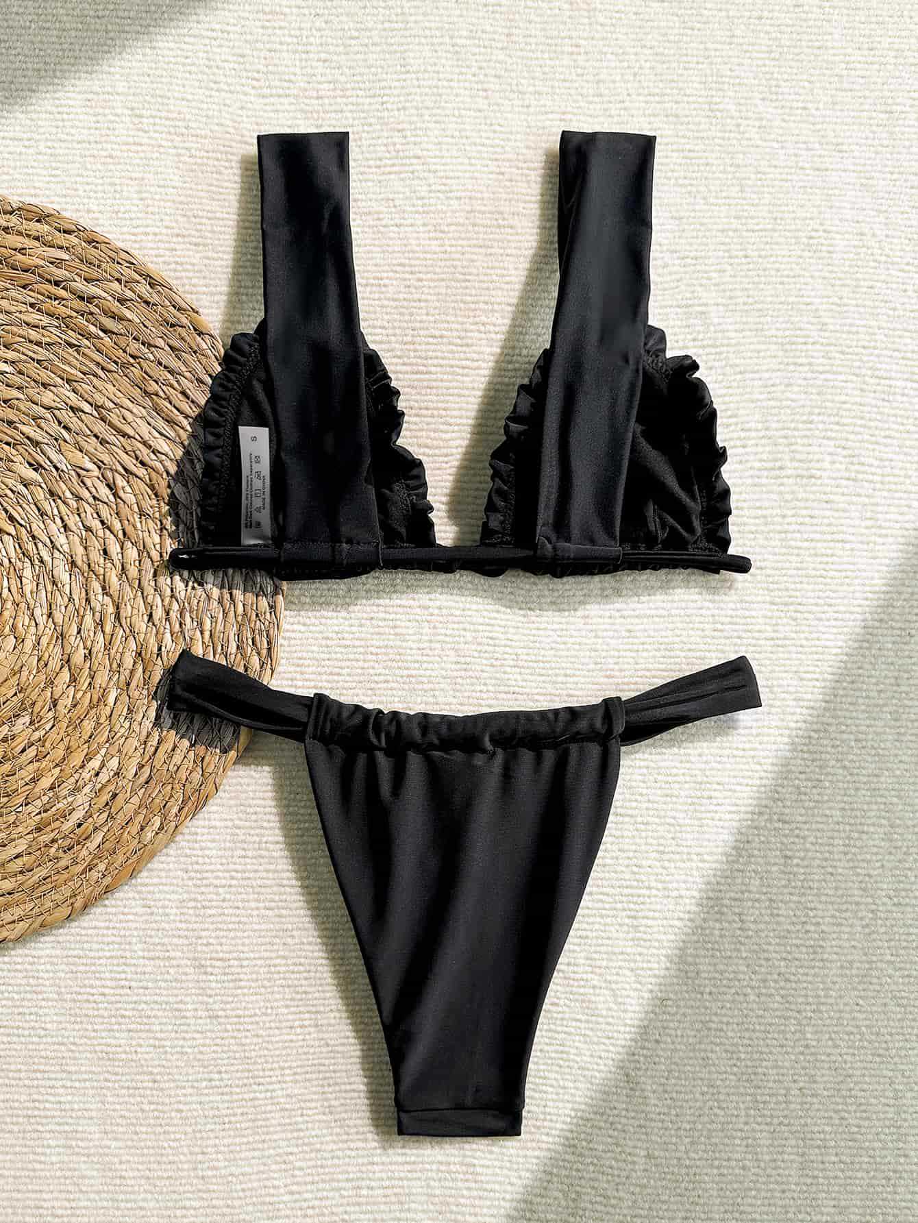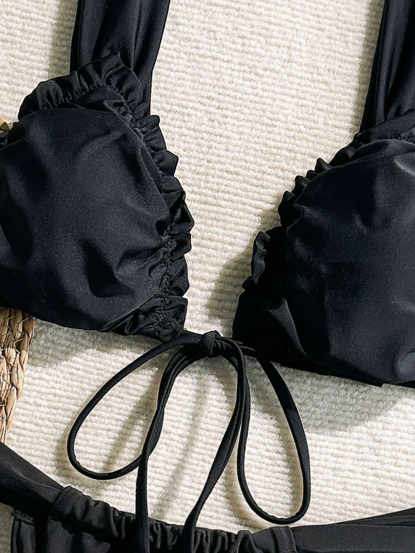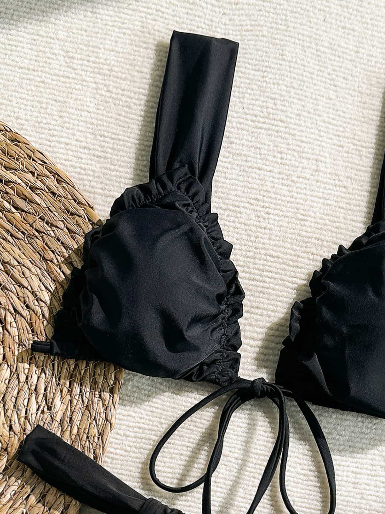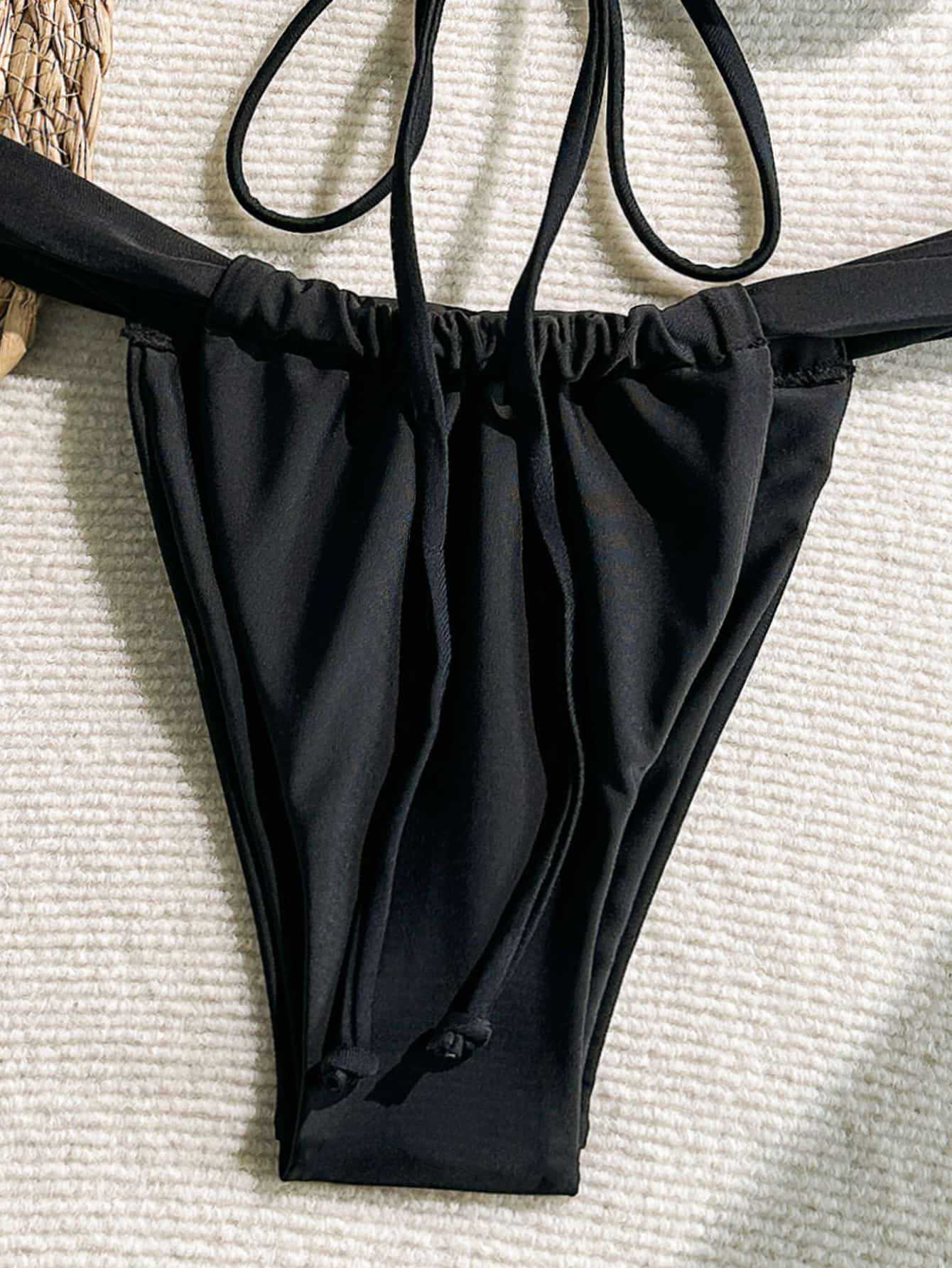 新款亚马逊分体系带泳装女纯色性感比基尼套装跨境欧美三点式泳衣