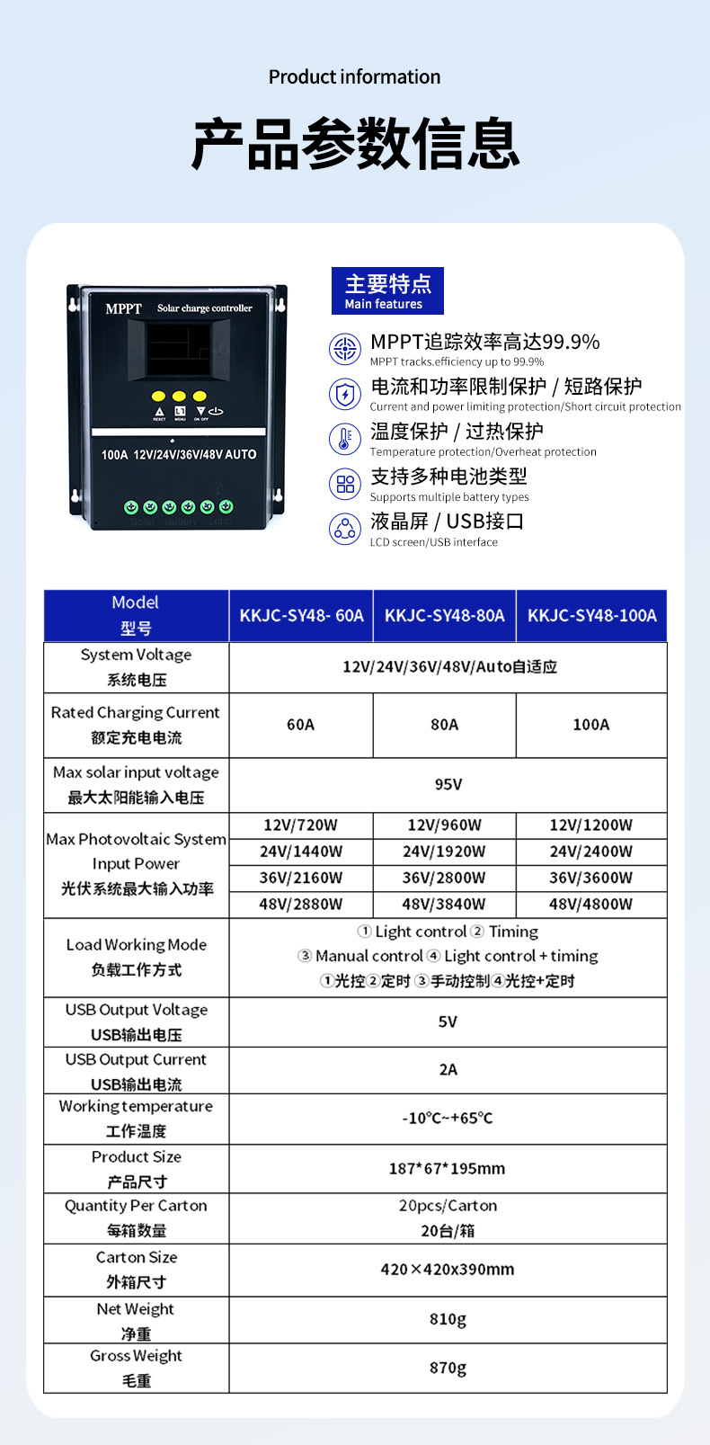 KKJC-SA太阳能控制器铅酸锂电池通用液晶屏80A全自动光伏板控制器,批发价,价格:71,厂家直销,KKJC-SA太阳能控制器铅酸锂电池通用液晶屏80A全自动光伏板控制器,免费拿样。