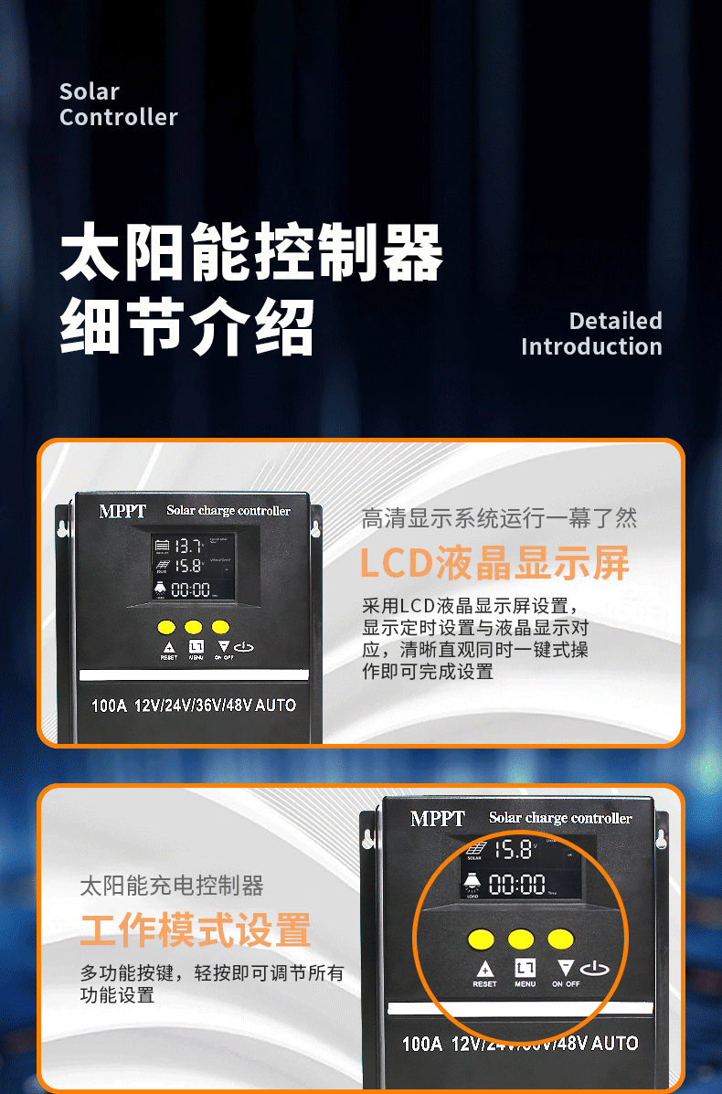 KKJC-SA太阳能控制器铅酸锂电池通用液晶屏80A全自动光伏板控制器