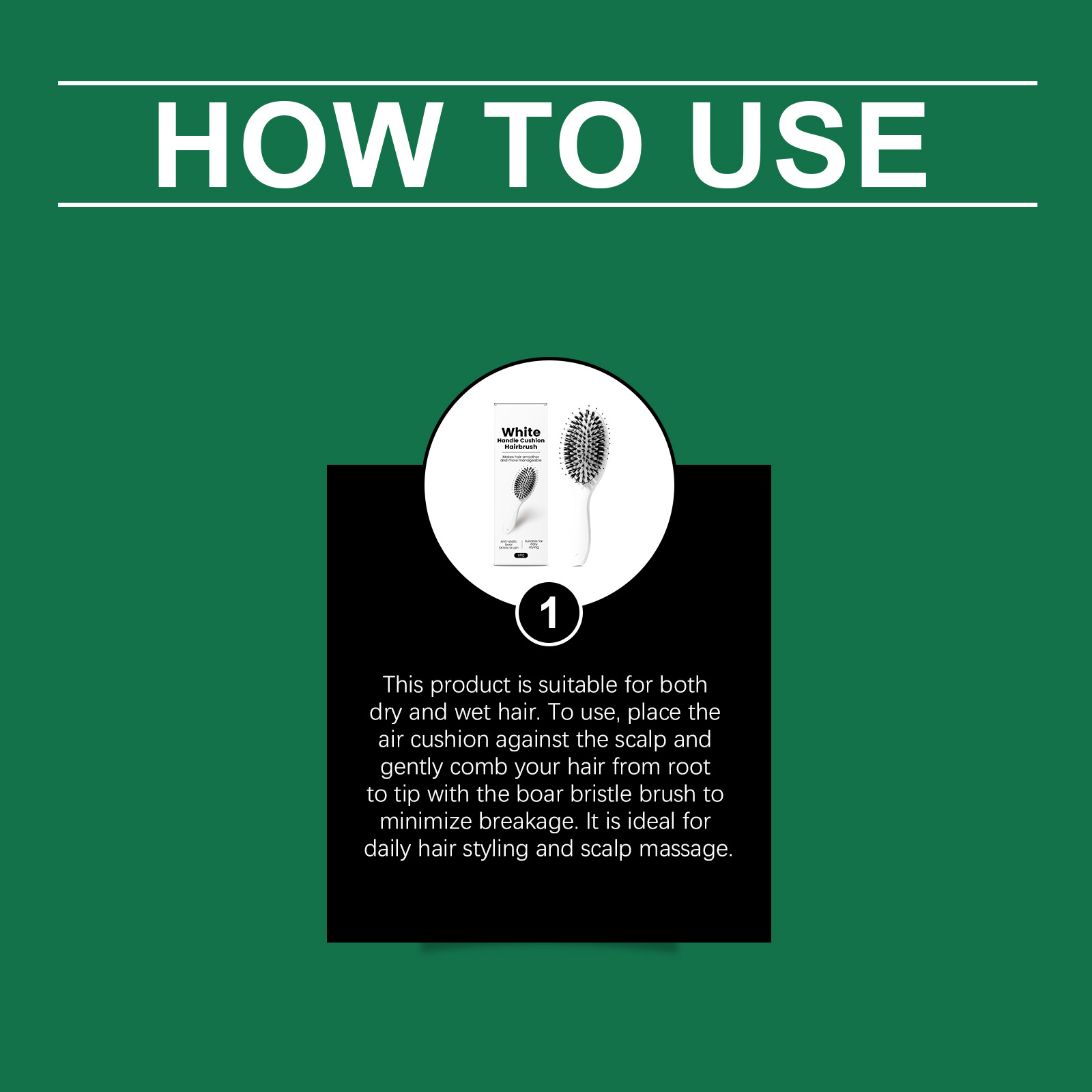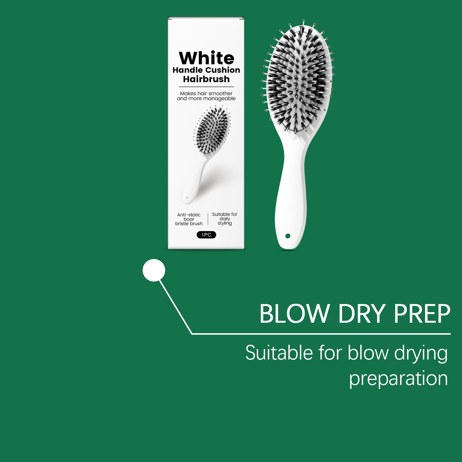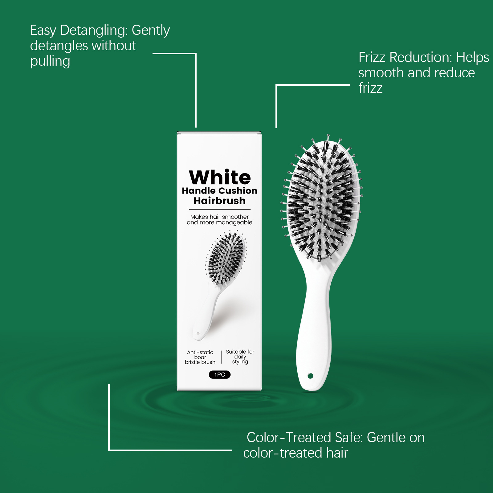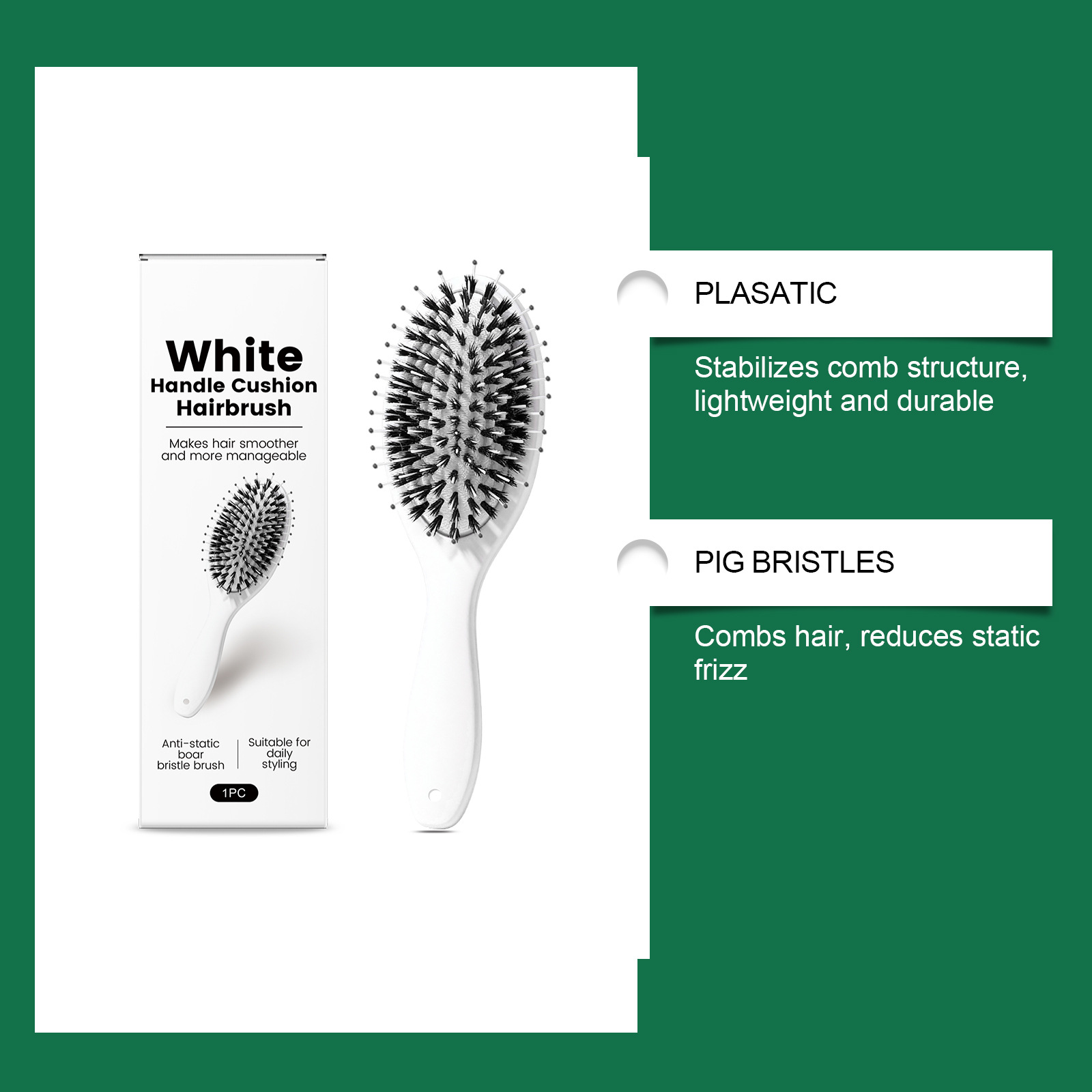 白柄鬃毛气垫梳 温和舒适梳顺打结日常轻便耐用小巧便携防滑手柄