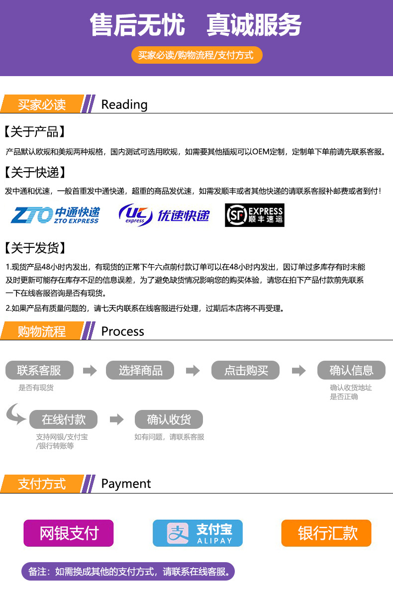 2.店铺上所有的图片和链接不是实物的价格,价格都是接到图纸和样品后买卖双方决定。未经客服同意,拍下宝贝并付款的,一律视作无效。买家的损失自负。