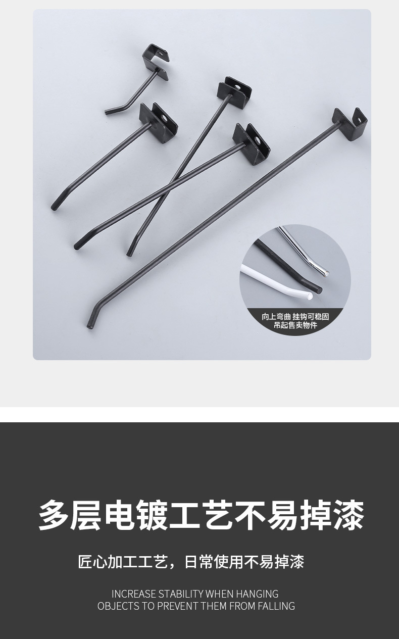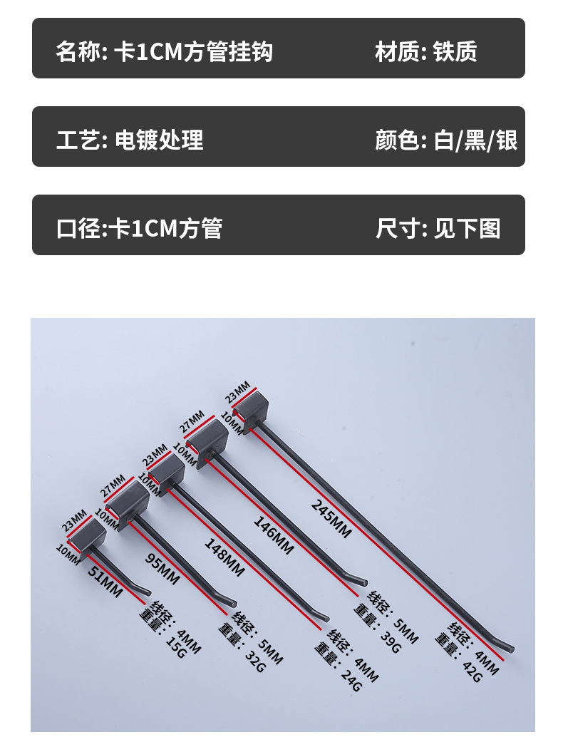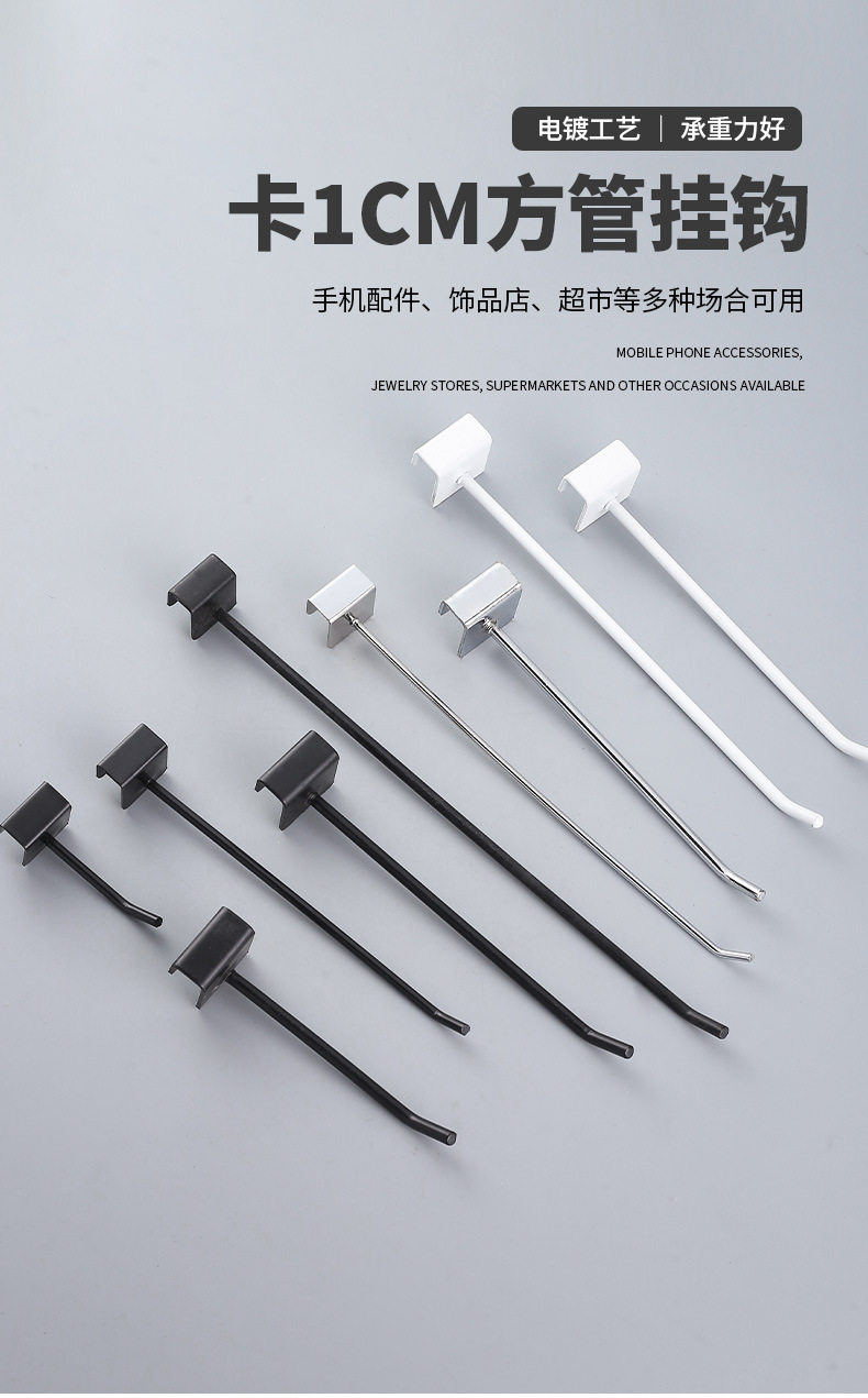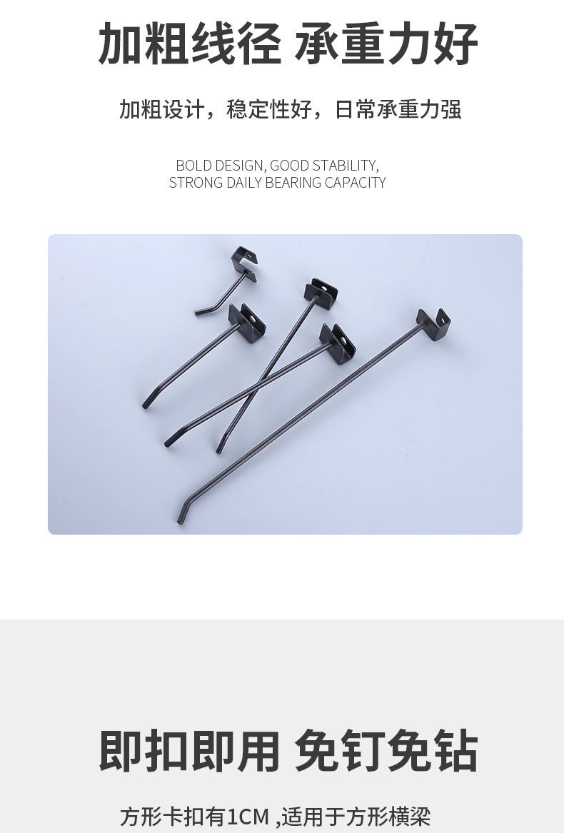 卡10方管货架横梁挂钩烤漆黑白色饰品袜子超市单线手机配件挂钩