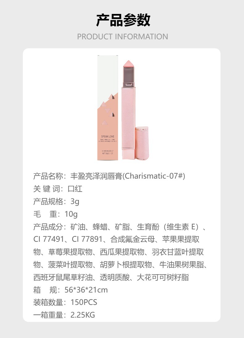 丰盈亮泽润唇膏(Charismatic-07#) 柔和粉打造自然水润唇妆,批发价,价格:20,厂家直销,丰盈亮泽润唇膏(Charismatic-07#) 柔和粉打造自然水润唇妆,免费拿样。