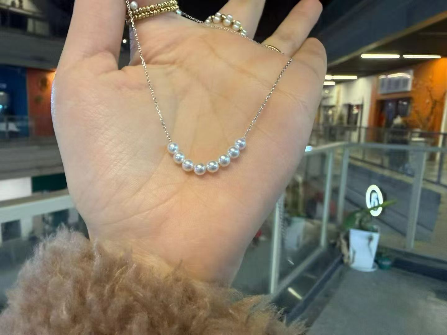 38女神节礼物微笑路路通项链搭配4-5mm淡水小灯泡珍珠项链正圆