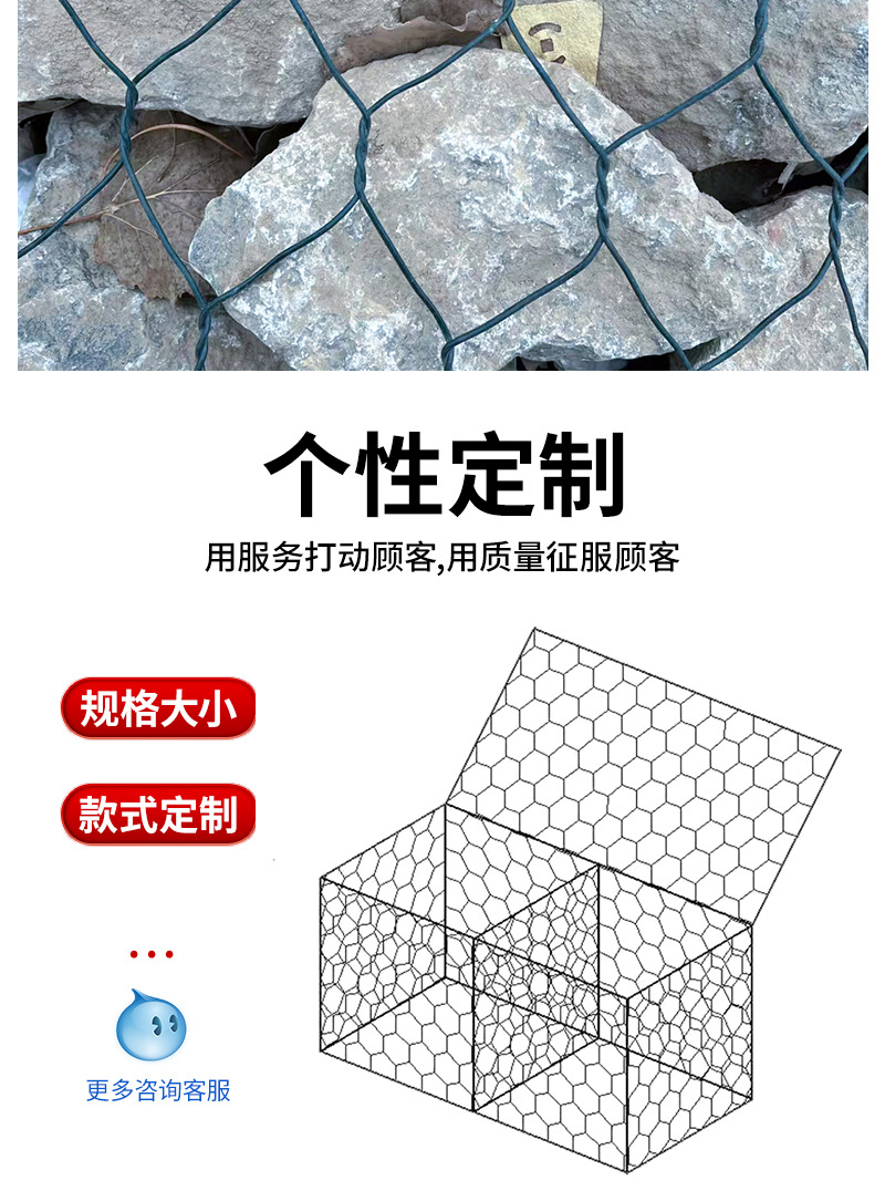 石笼网固宾笼铅丝堤坝防护坡镀锌滨垫雷诺护垫格宾网箱石头笼