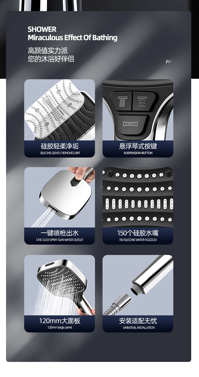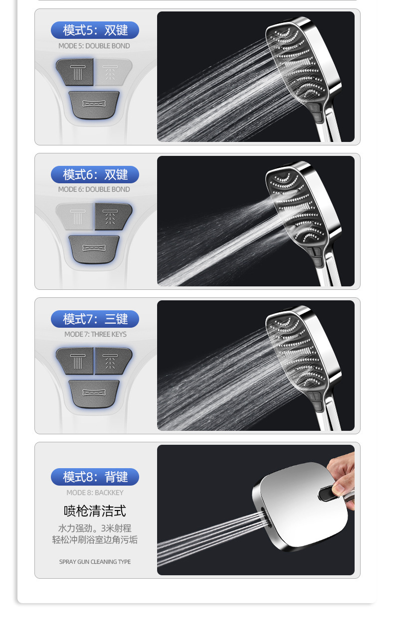 跨境美式八档喷枪增压喷雾花洒淋浴花洒喷头多功能莲蓬头花洒套装,批发价,价格:48.8,厂家直销,跨境美式八档喷枪增压喷雾花洒淋浴花洒喷头多功能莲蓬头花洒套装,免费拿样。