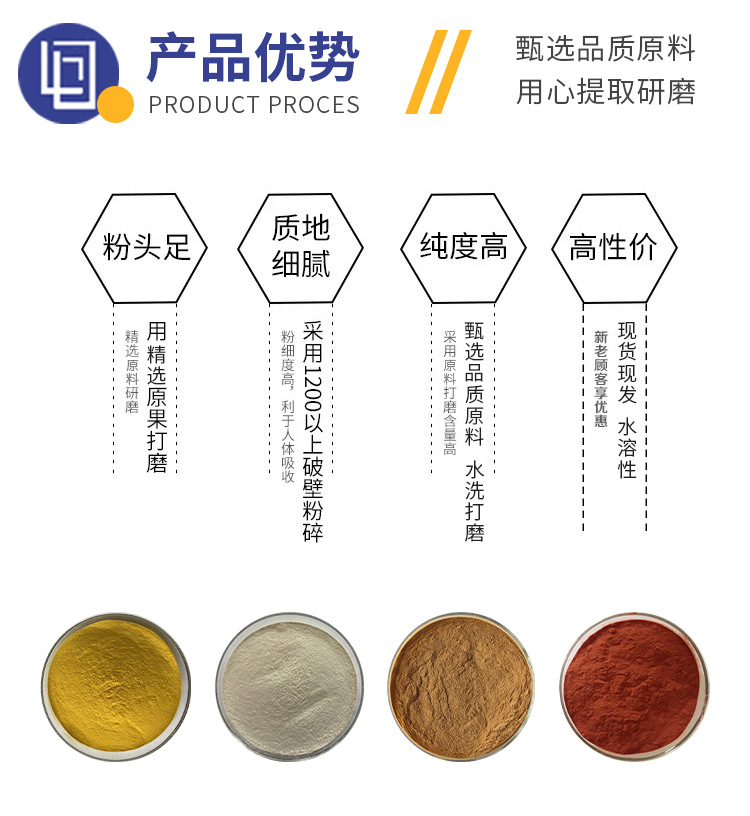 【生产工艺】精选原料、清洗原料、3遍提取、浓缩、喷雾干燥成粉、过筛灭菌、包装。