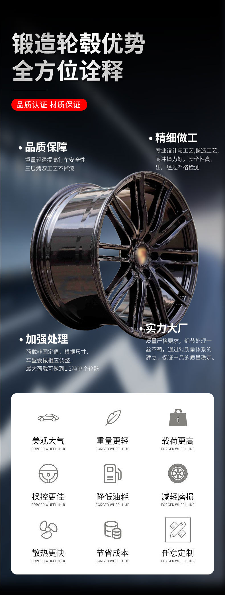 适用保时捷车型PO-7HXHH HCD09银灰车面万吨锻造个性汽车轮毂轮圈