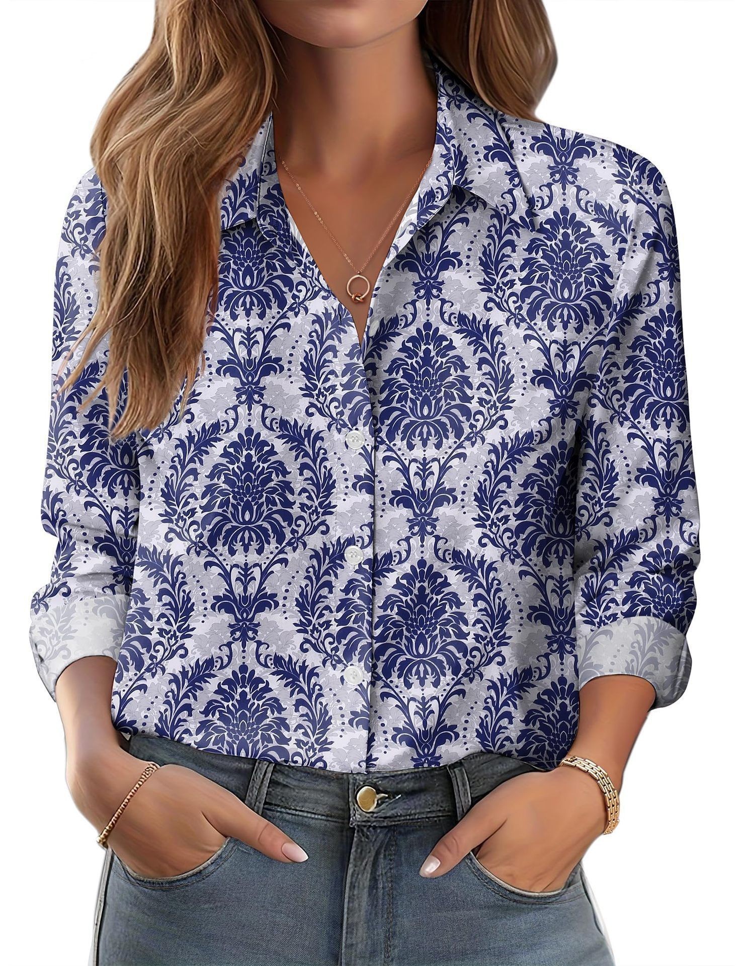 跨境亚马逊新款花枝古典优雅印花3D数码宽松开衫女士长袖衬衫