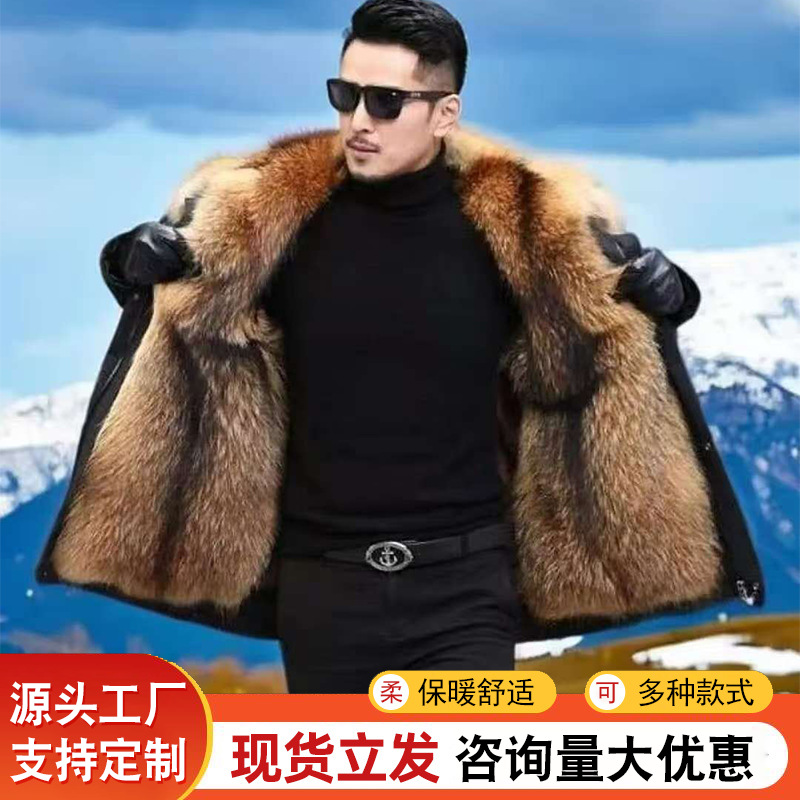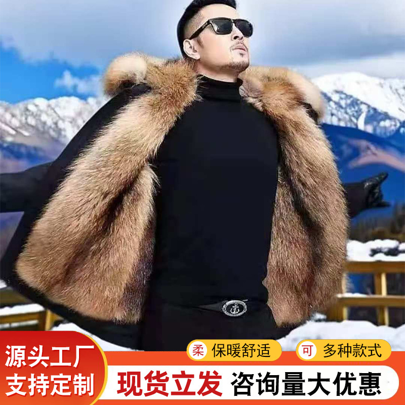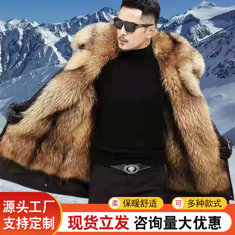 新款男式派克服连帽外套水貉皮毛内胆防寒御冬男装中长尼克服