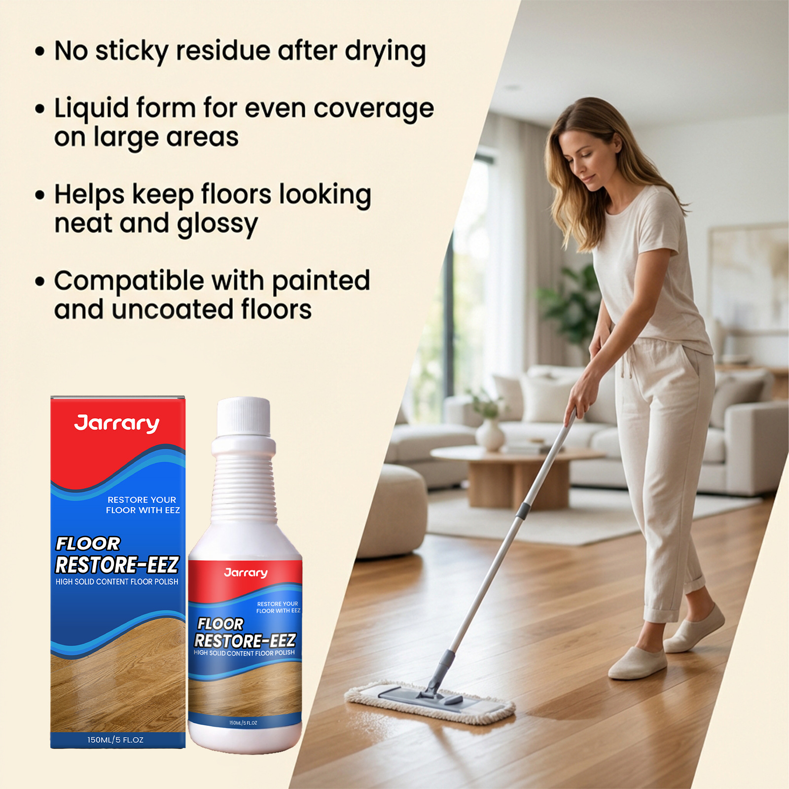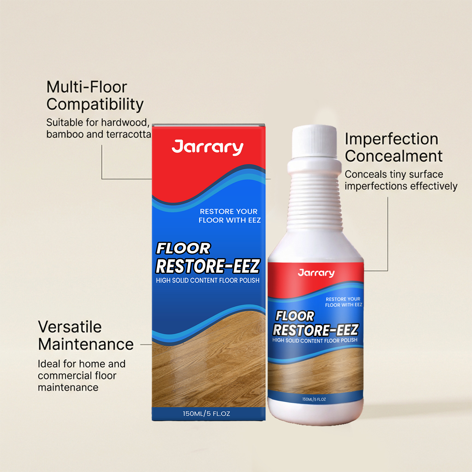 Jarrary 地板抛光剂 便捷护理改善地板划痕外观温和配方保养地板