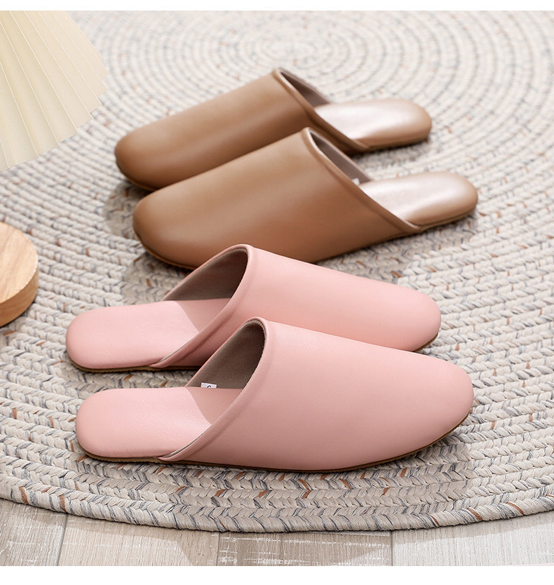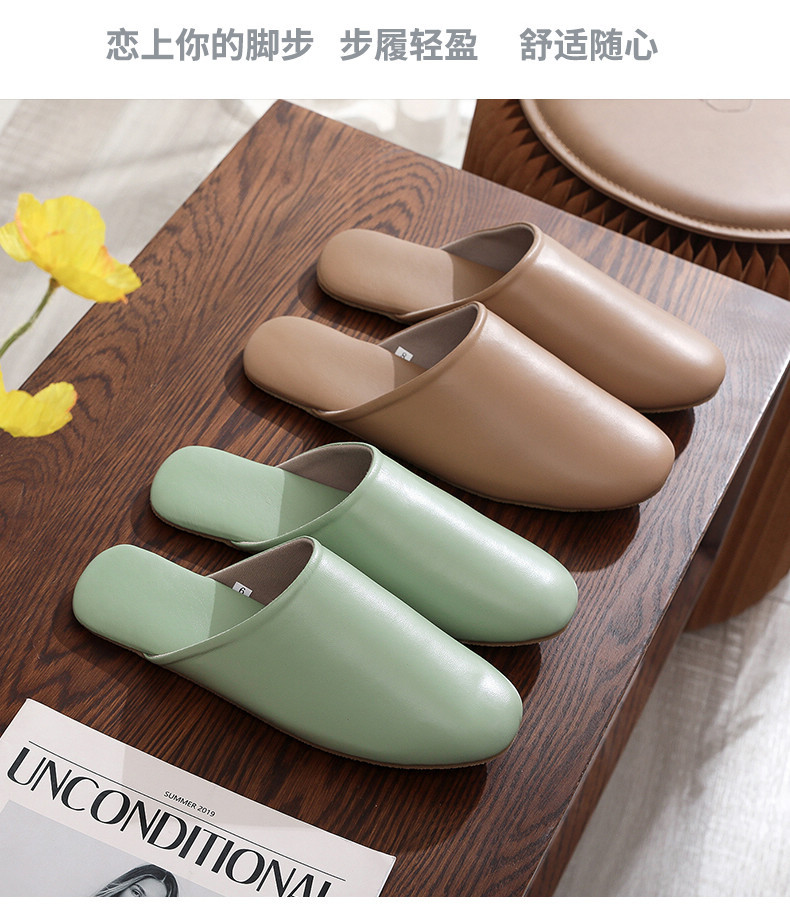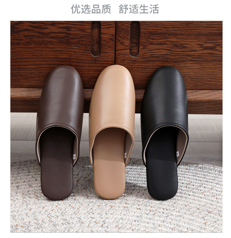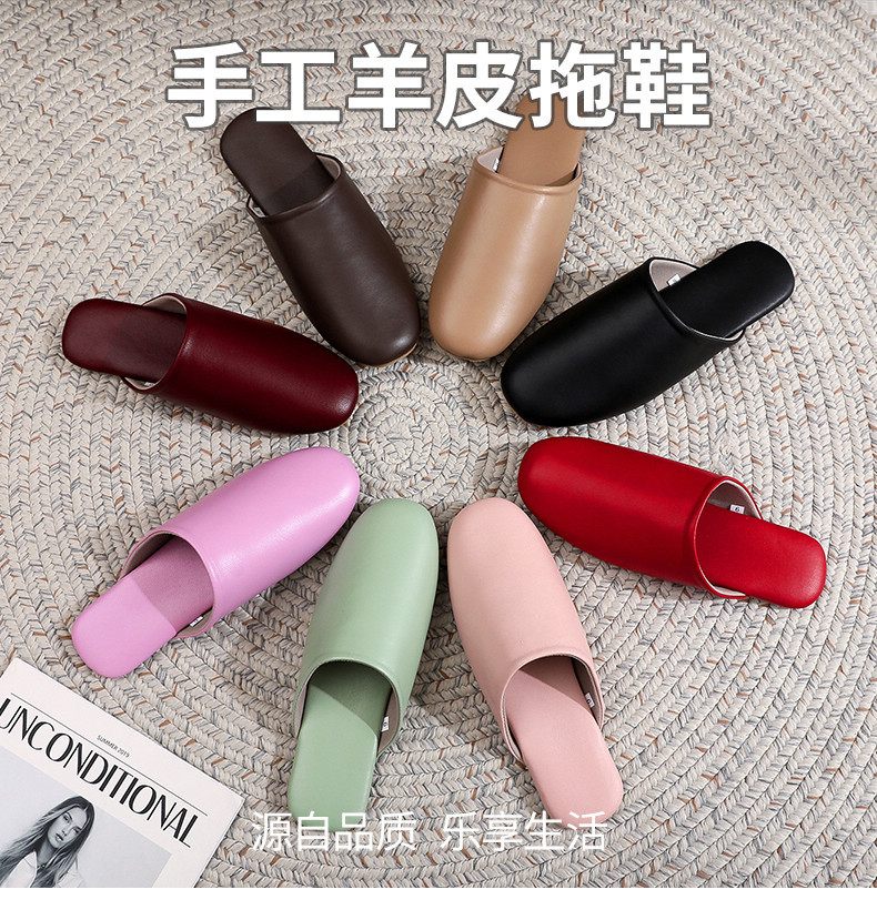 高级透气四季春秋家居头层羊皮拖鞋家用室内耐磨情侣皮拖鞋