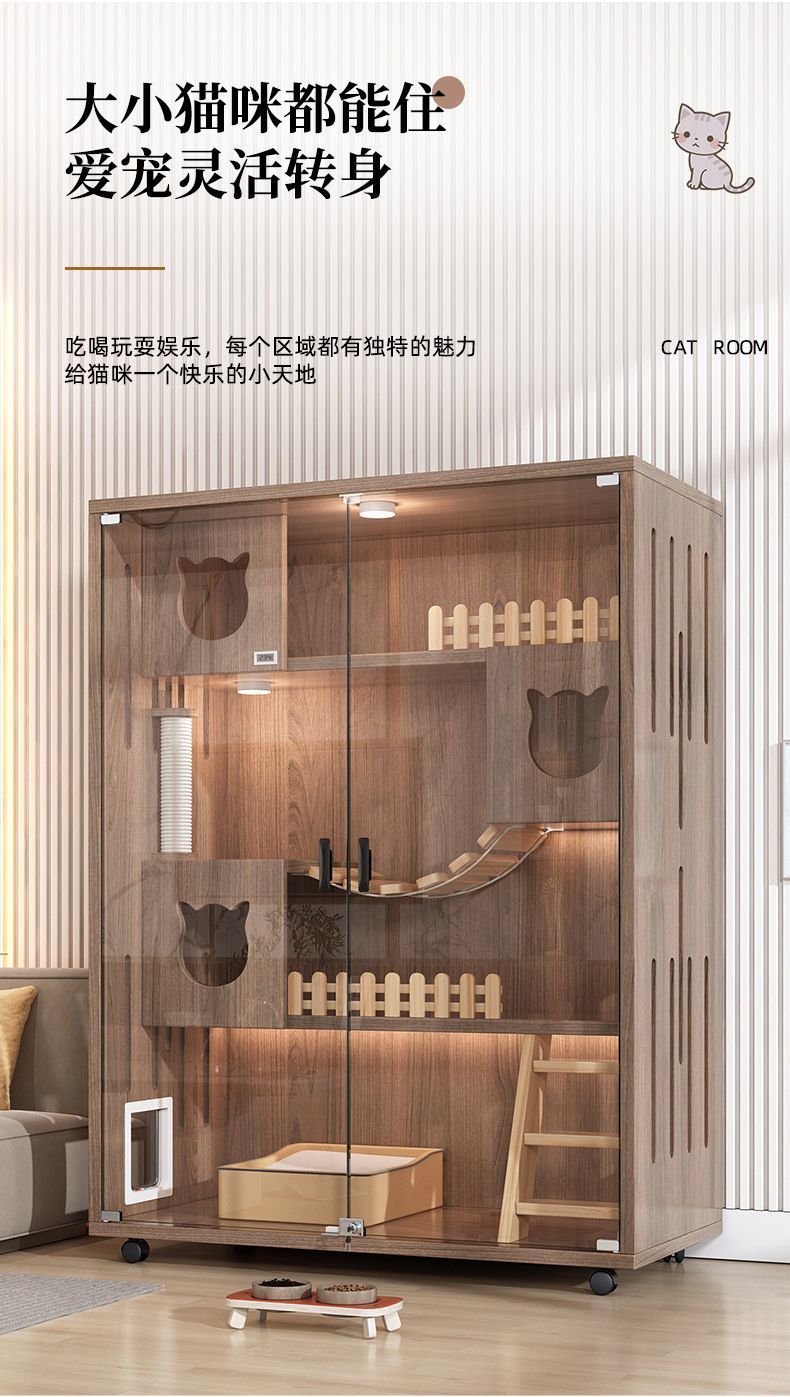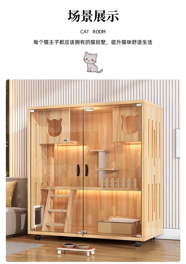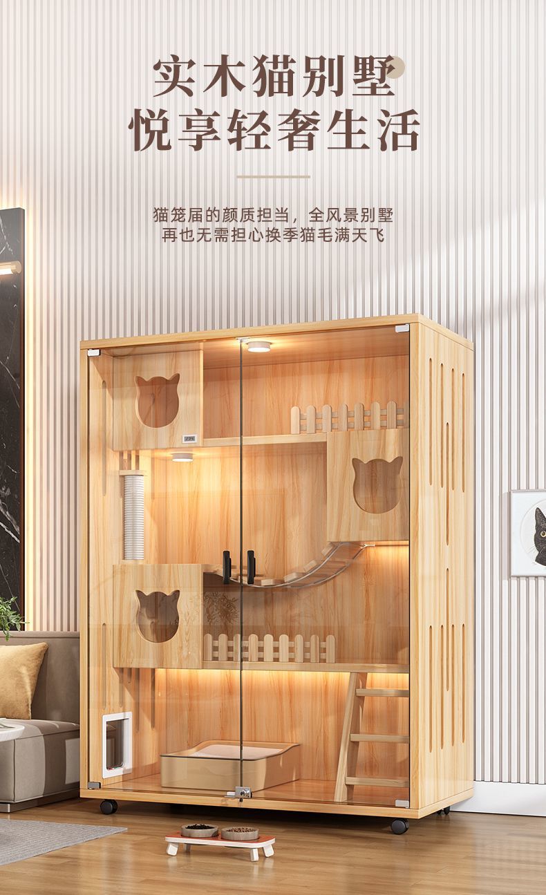 猫别墅实木猫笼子家用室内超大自由空间猫舍猫柜猫窝猫咪房子猫屋