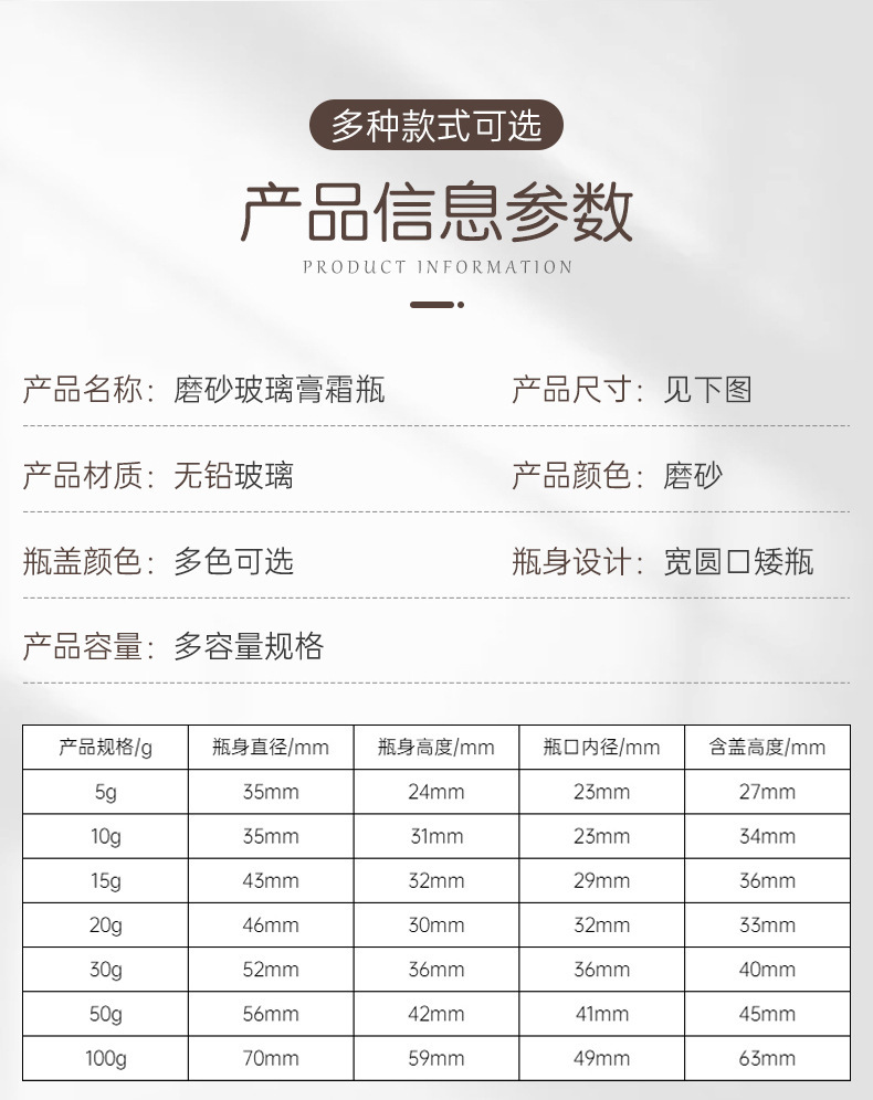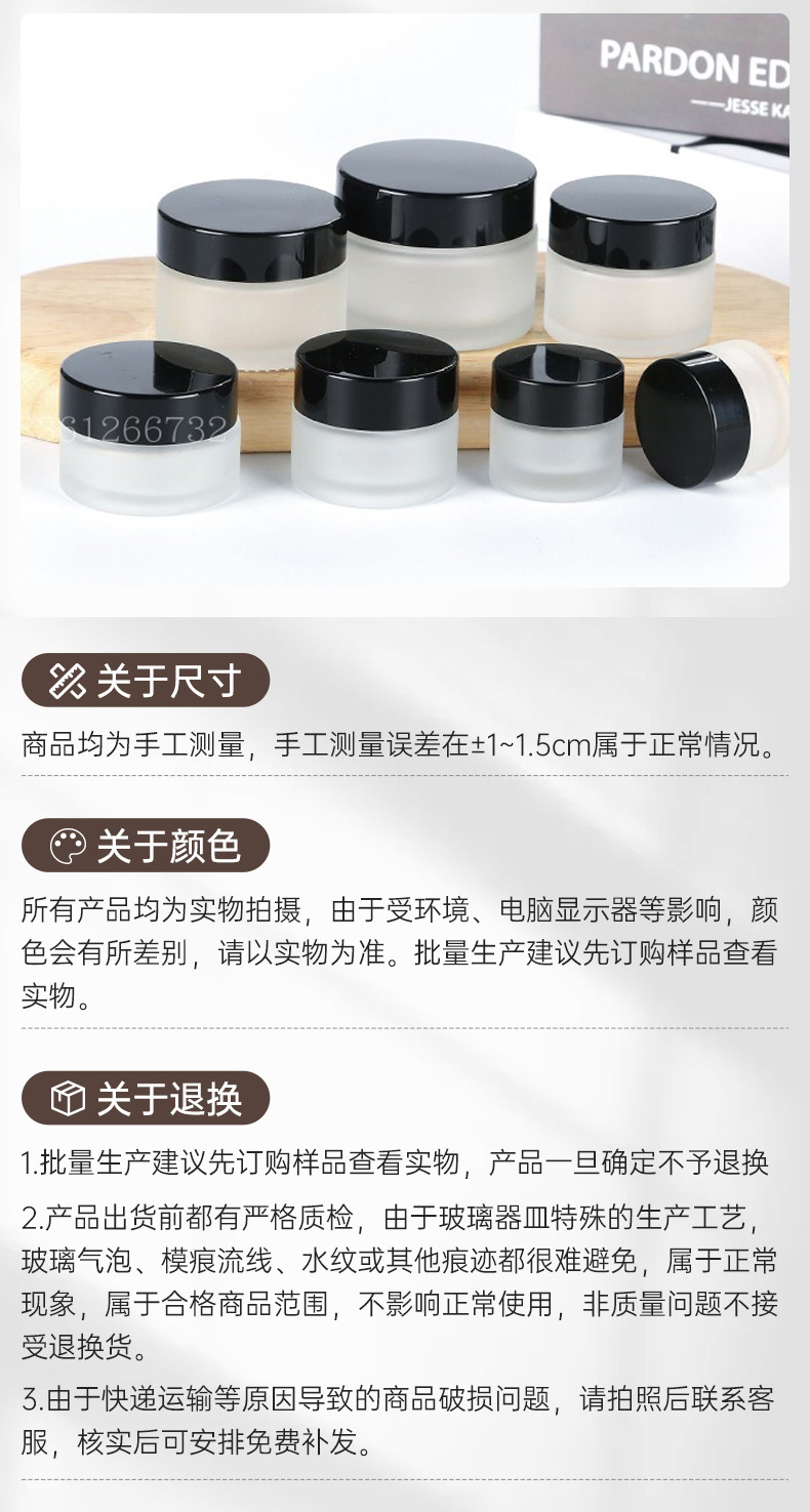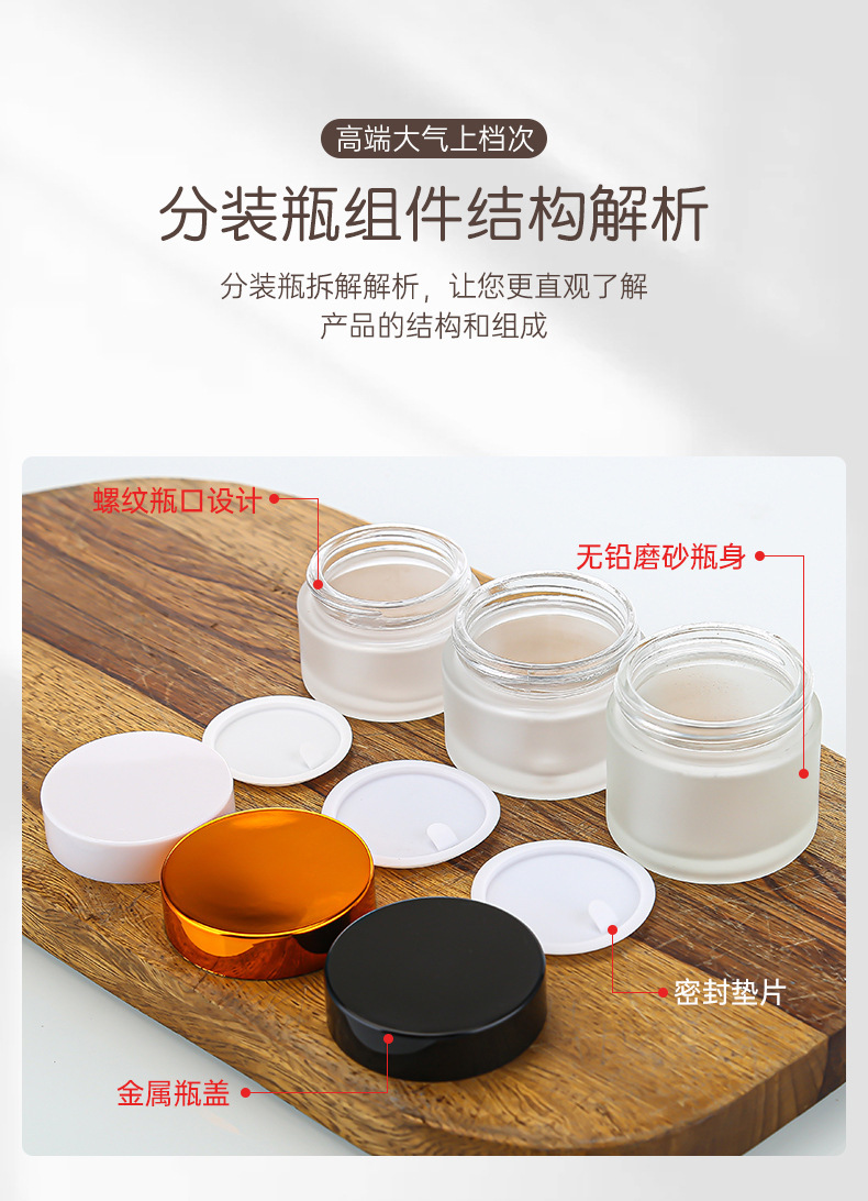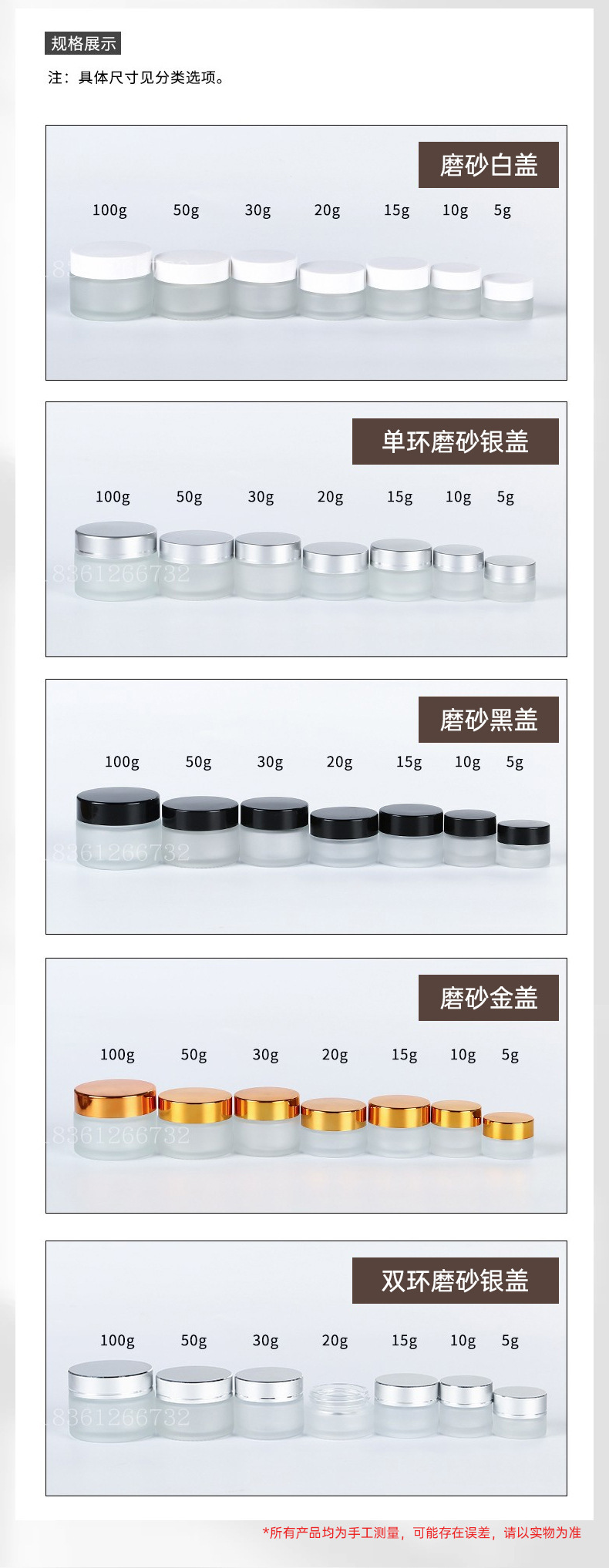 批发透明玻璃膏霜瓶空瓶蒙砂面霜瓶密封眼霜分装瓶化妆品小样瓶子
