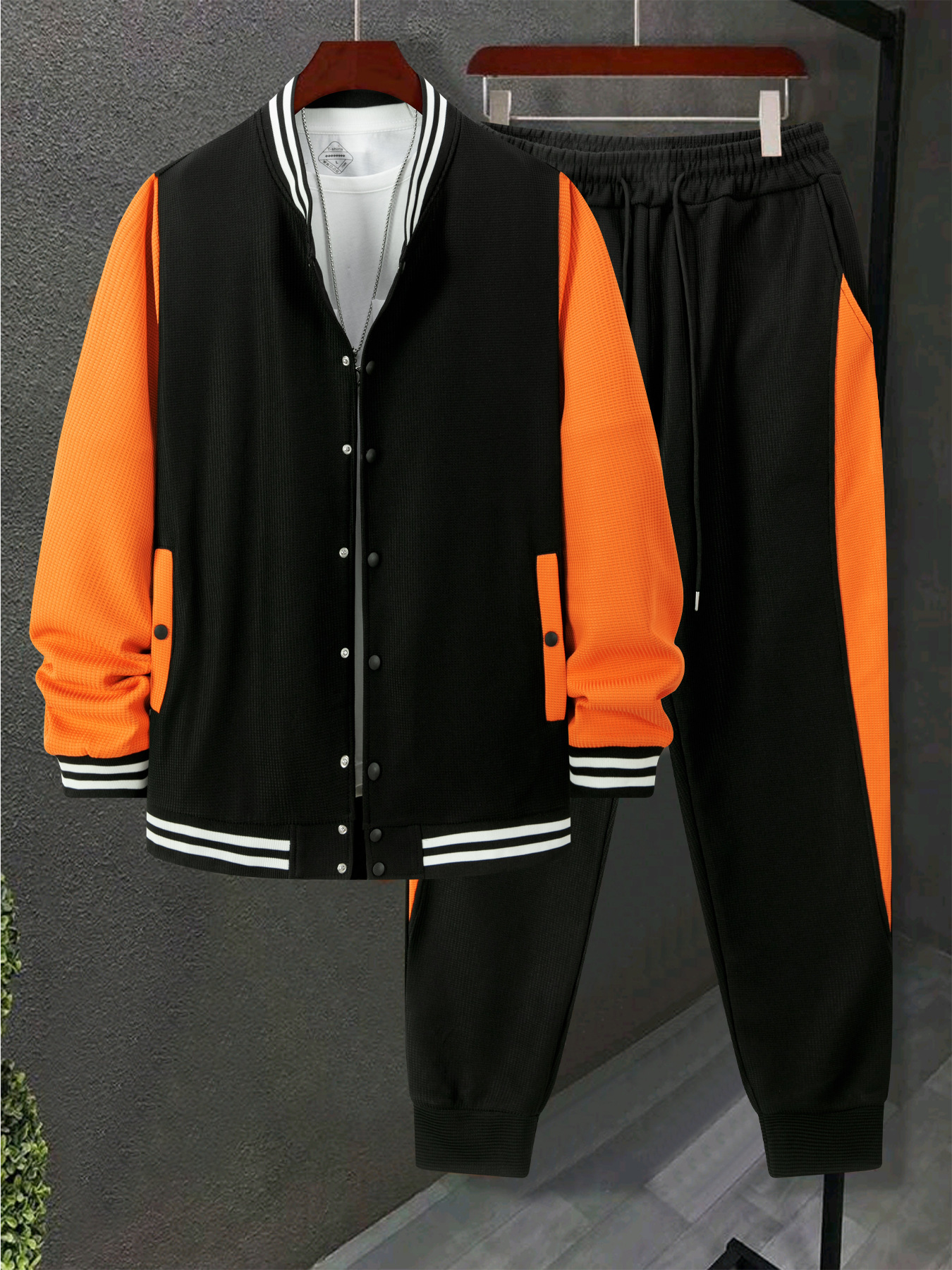 跨境秋冬新款棒球服休闲百搭加绒华夫格开衫外套拼色运动长裤套装,批发价,价格:60,厂家直销,跨境秋冬新款棒球服休闲百搭加绒华夫格开衫外套拼色运动长裤套装,免费拿样。