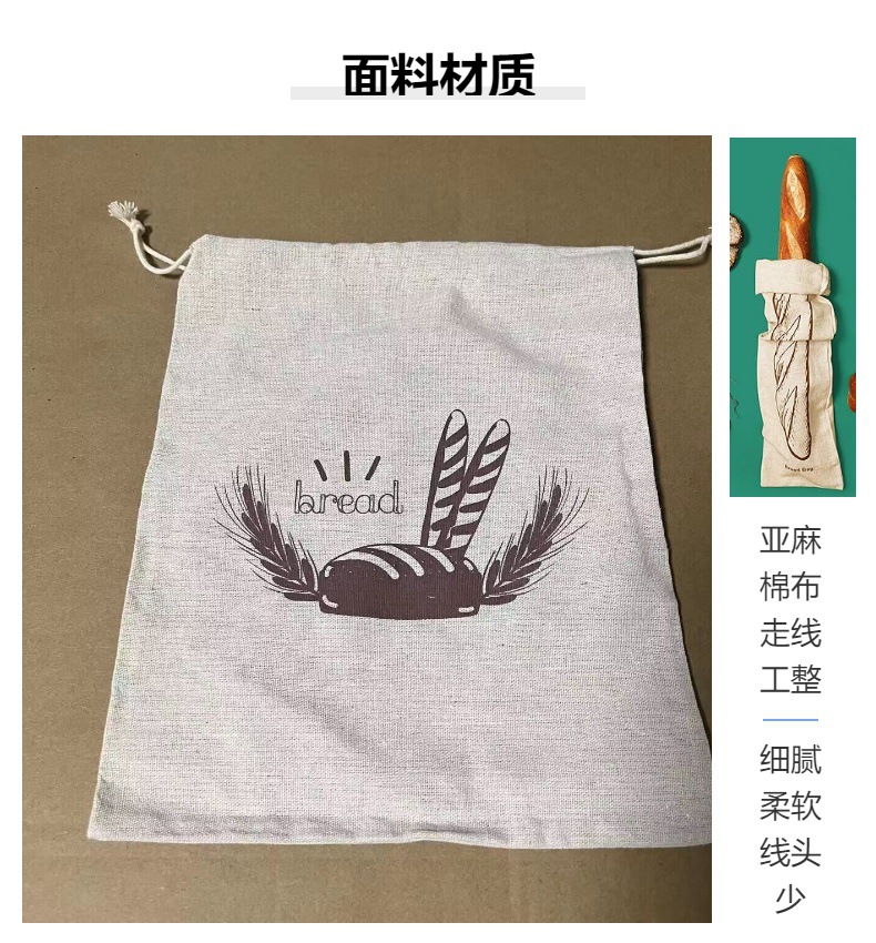 简约亚麻布袋法式棉布袋粮食干果蜂蜡插口保鲜环保TPU抽绳束口袋