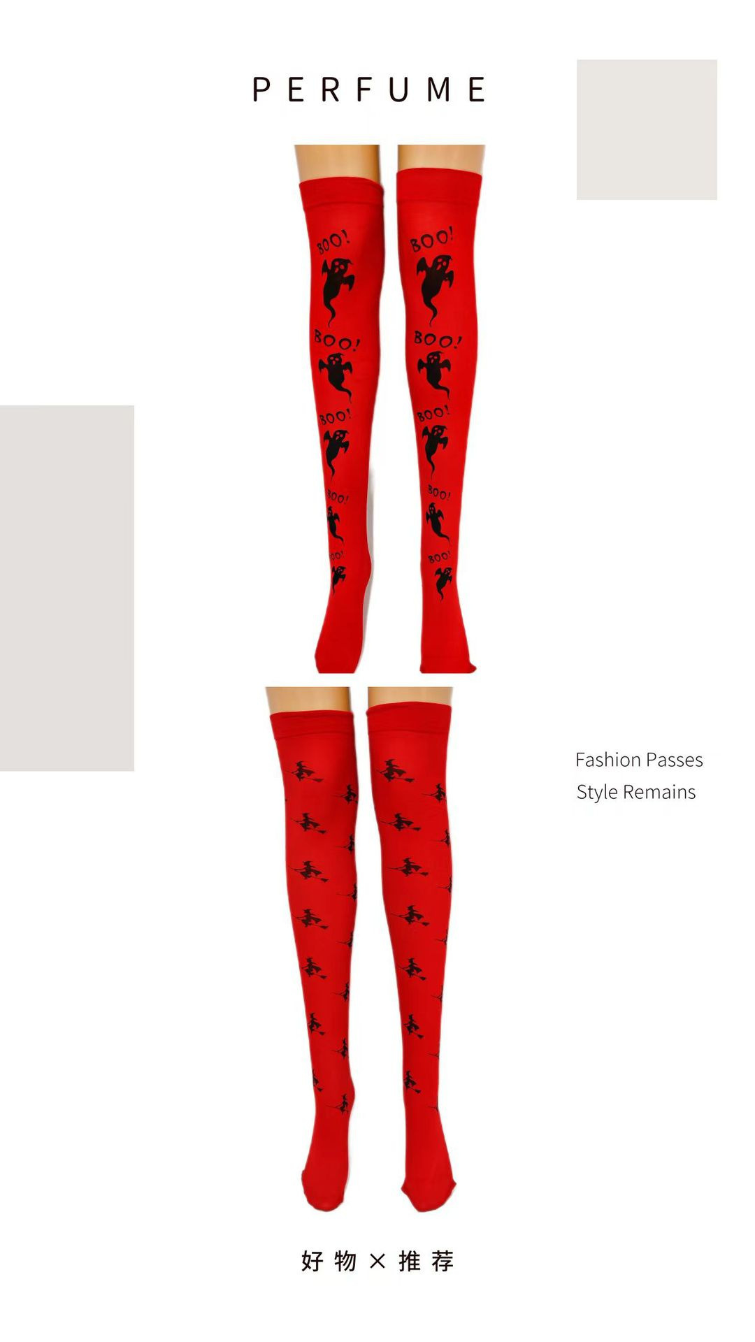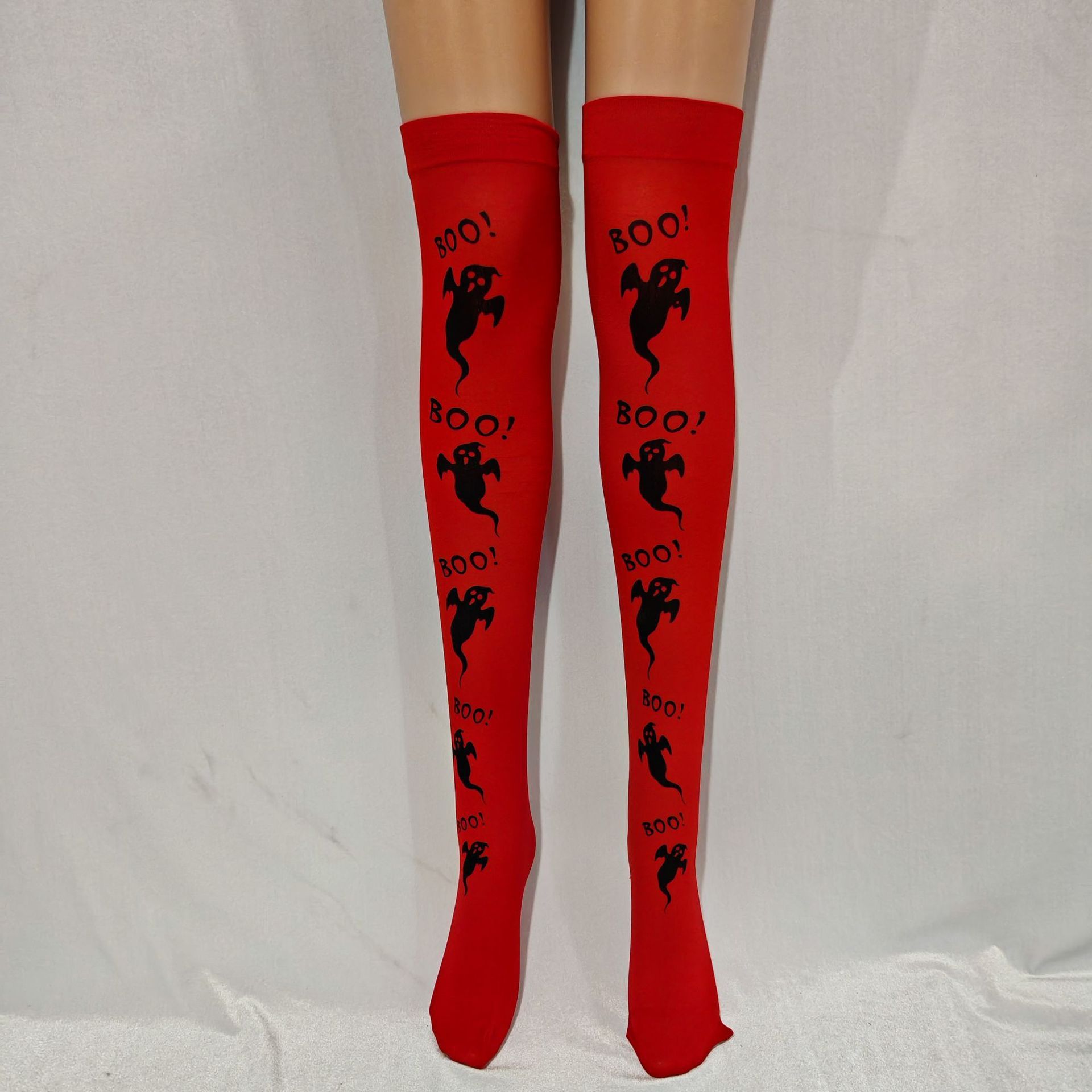 万圣节圣诞节长筒袜子鬼节红底幽灵女巫过膝袜派对舞会表演踩脚袜