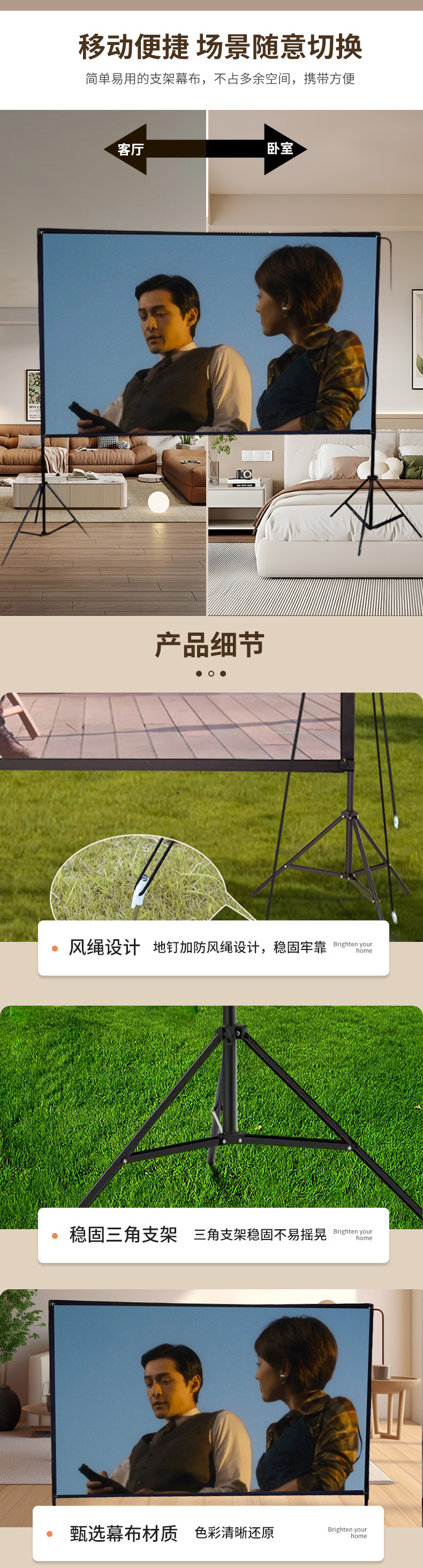 户外落地双支架投影幕布高清100 120英寸家用露营投影仪屏幕幕布