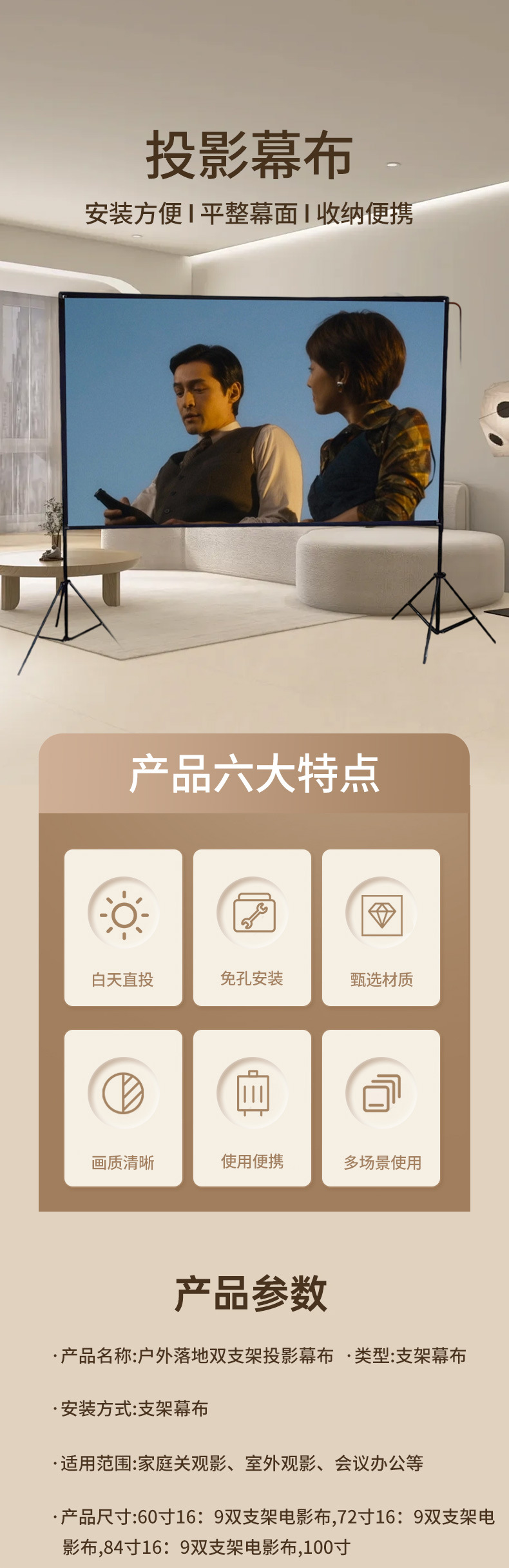 户外落地双支架投影幕布高清100 120英寸家用露营投影仪屏幕幕布,批发价,价格:185,厂家直销,户外落地双支架投影幕布高清100 120英寸家用露营投影仪屏幕幕布,免费拿样。
