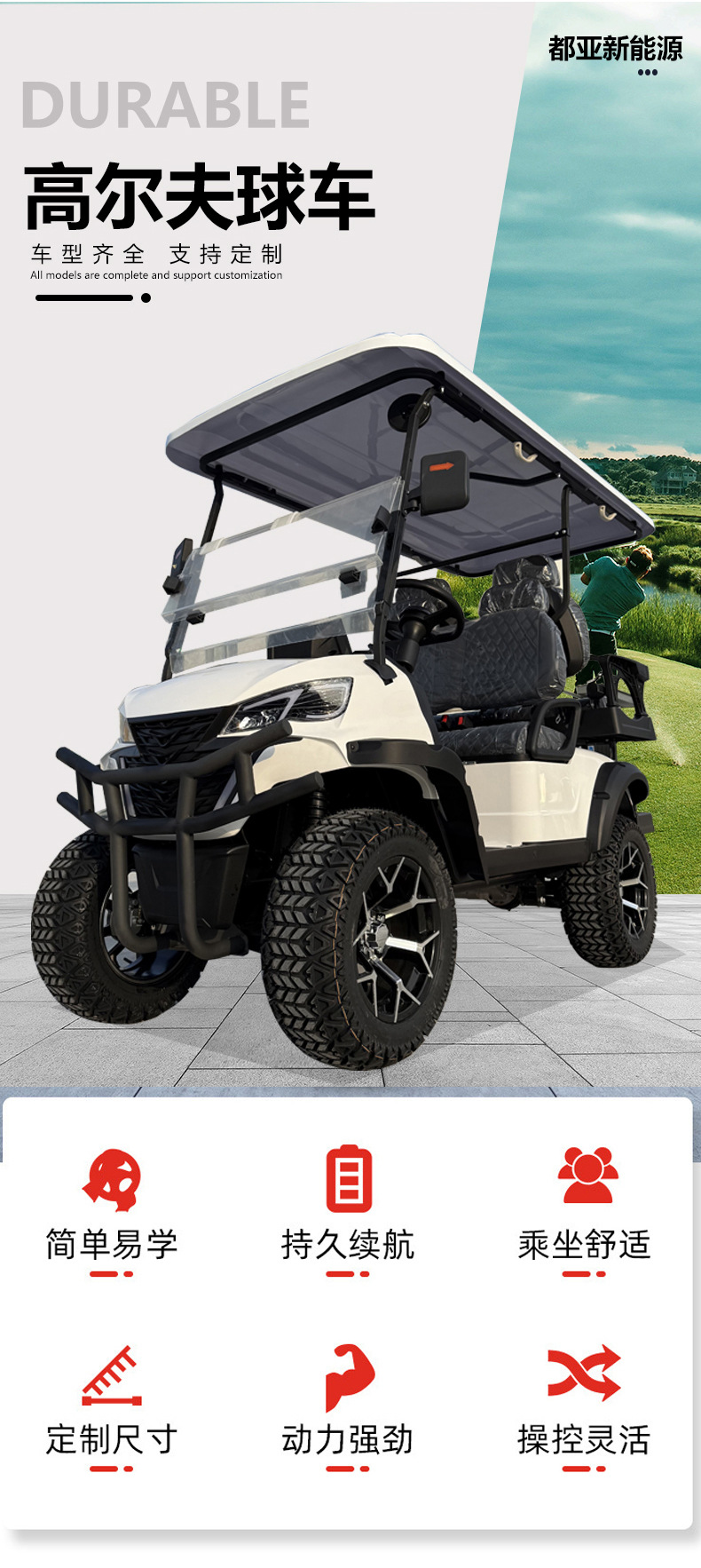 电动高尔夫球车游览越野车楼盘看房车景区机场酒店四轮高尔夫球车