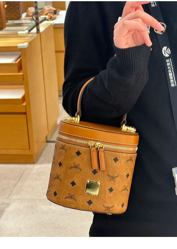 新款MC家圆筒斜挎包水桶包手提单肩斜挎双肩包高颜值轻奢高级感女