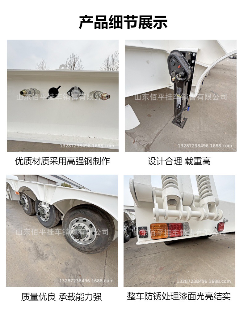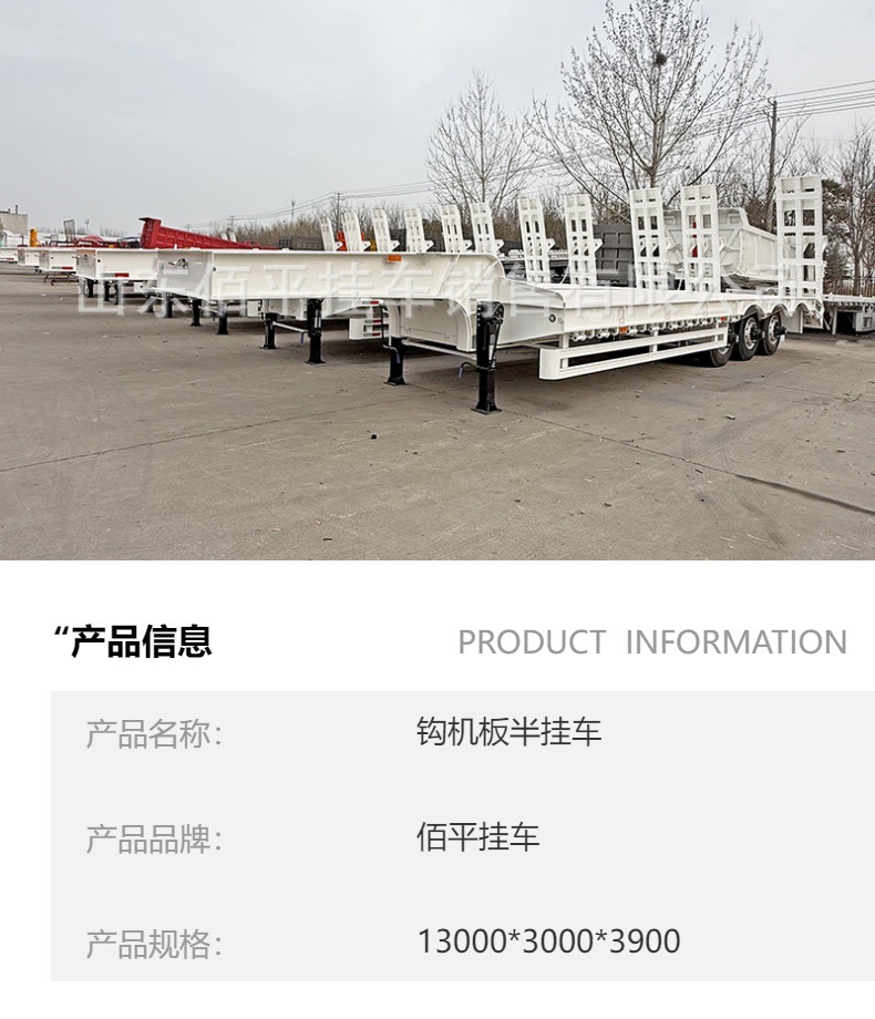 山东佰平挂车销售有限公司是集产品计,科研开发,生产销售于一体化的公司,公司主要生产低平板运输半挂车、出口集装箱平板半挂车、液压轴线模块车、塔筒转运车、上山工装车、自行走液压车、风叶运输半挂车、自卸半挂车,危险品罐式运输拖车等200多种产品,产品已出口非洲、中亚、中东、东南亚、澳大利亚、韩国等80多个国家和地区,深受广大客户信赖。