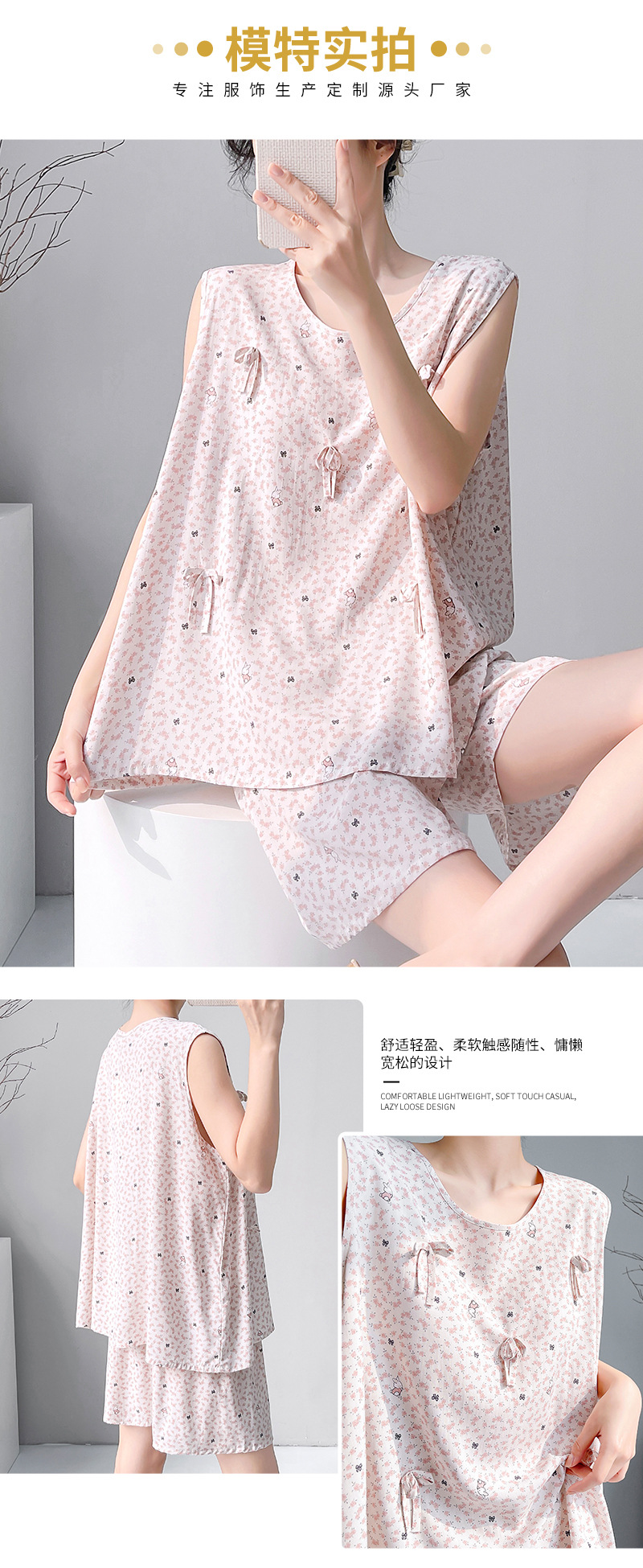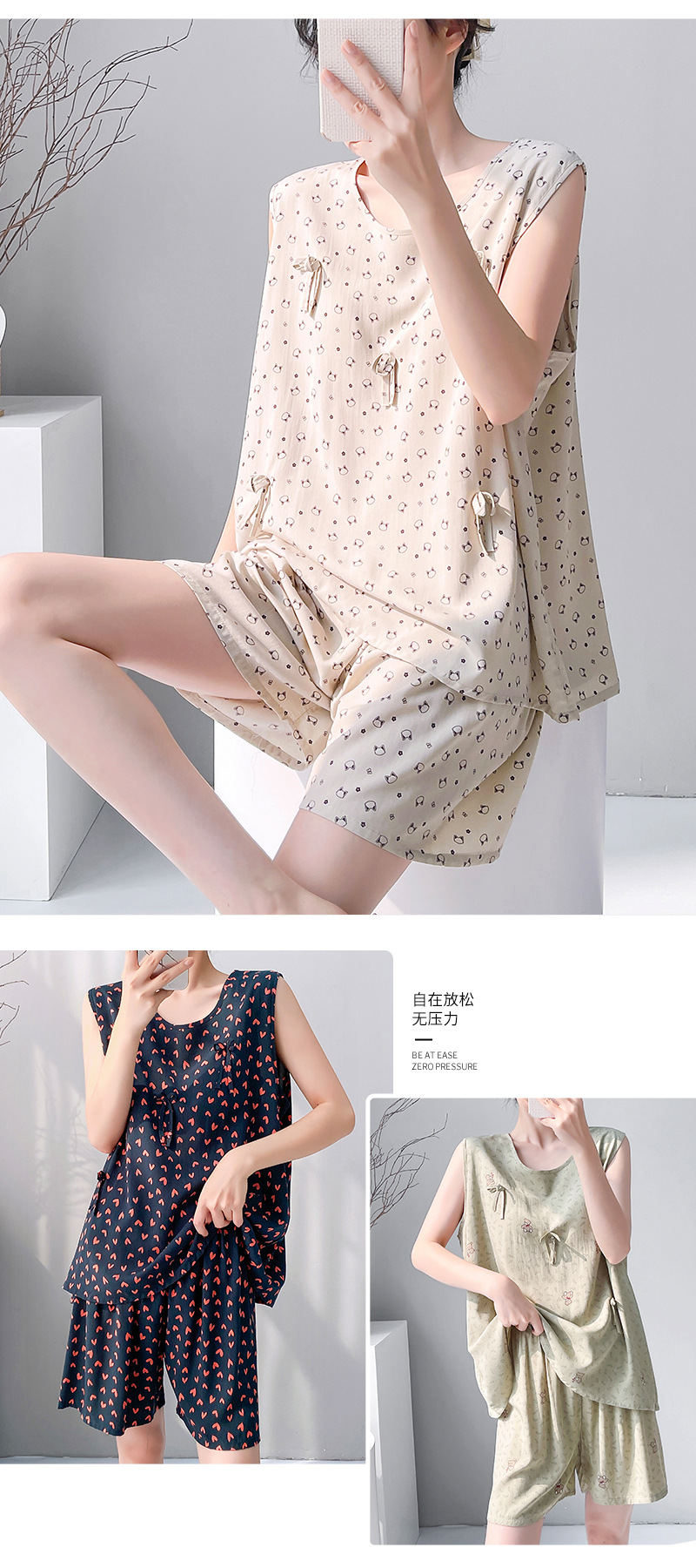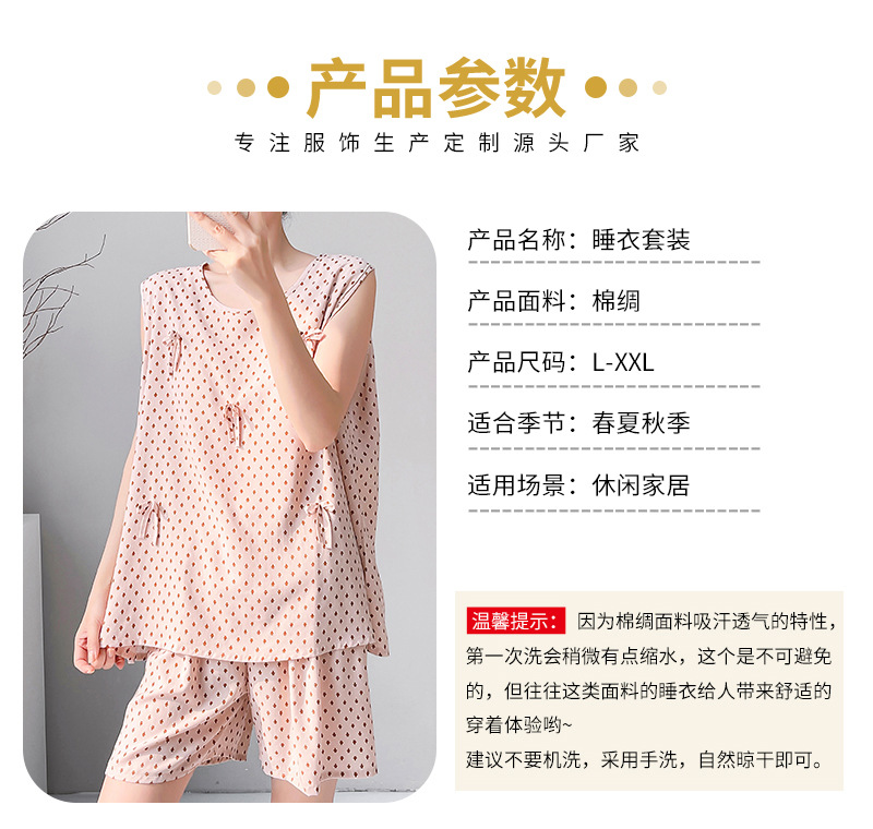 夏季绵绸睡裙无袖宽松春夏款女士家居服印花休闲宽松短裤套装现货,批发价,价格:26.8,厂家直销,夏季绵绸睡裙无袖宽松春夏款女士家居服印花休闲宽松短裤套装现货,免费拿样。
