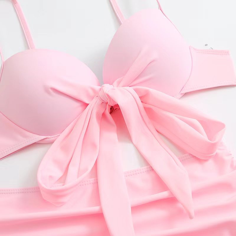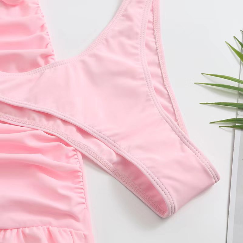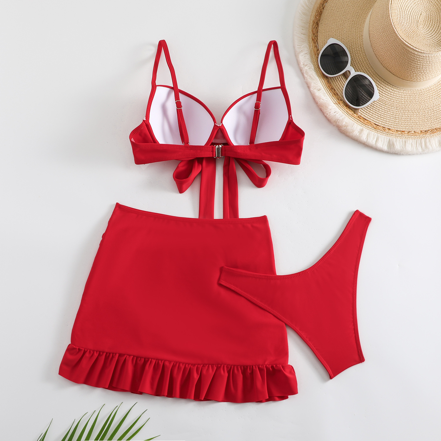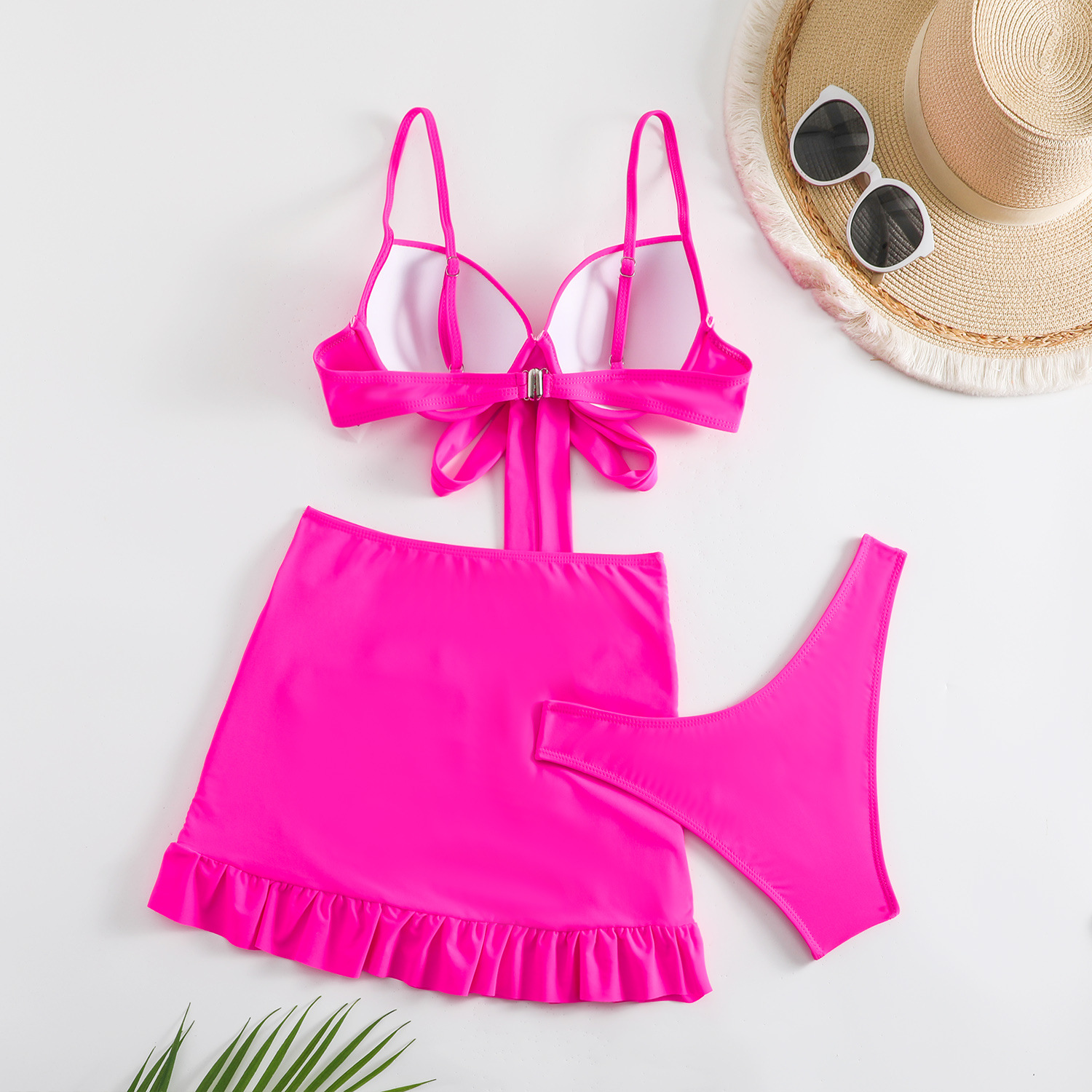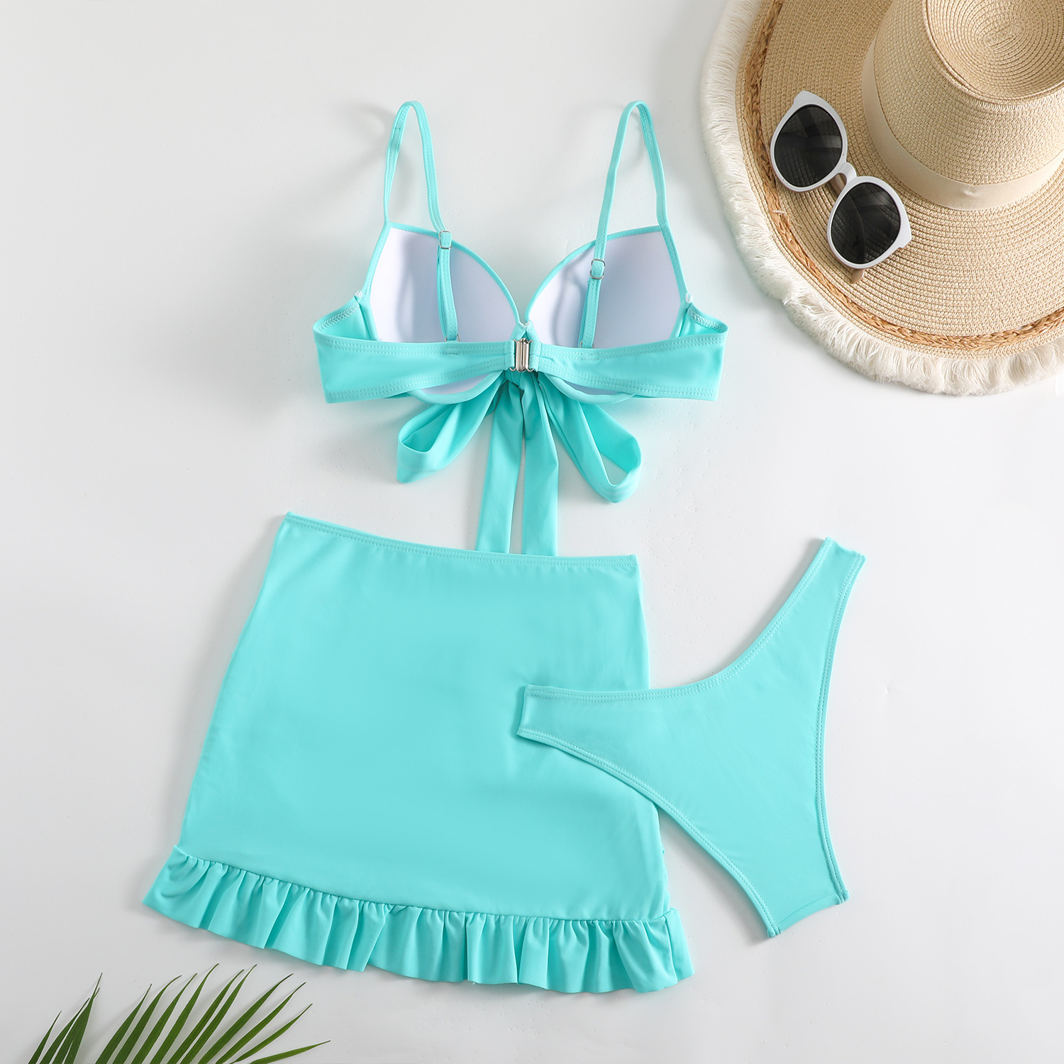 加工定制纯色分体泳衣女三件套欧美性感聚拢紧身绑带泳装性感紧身
