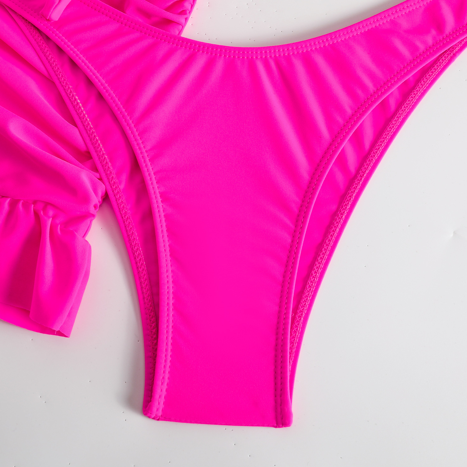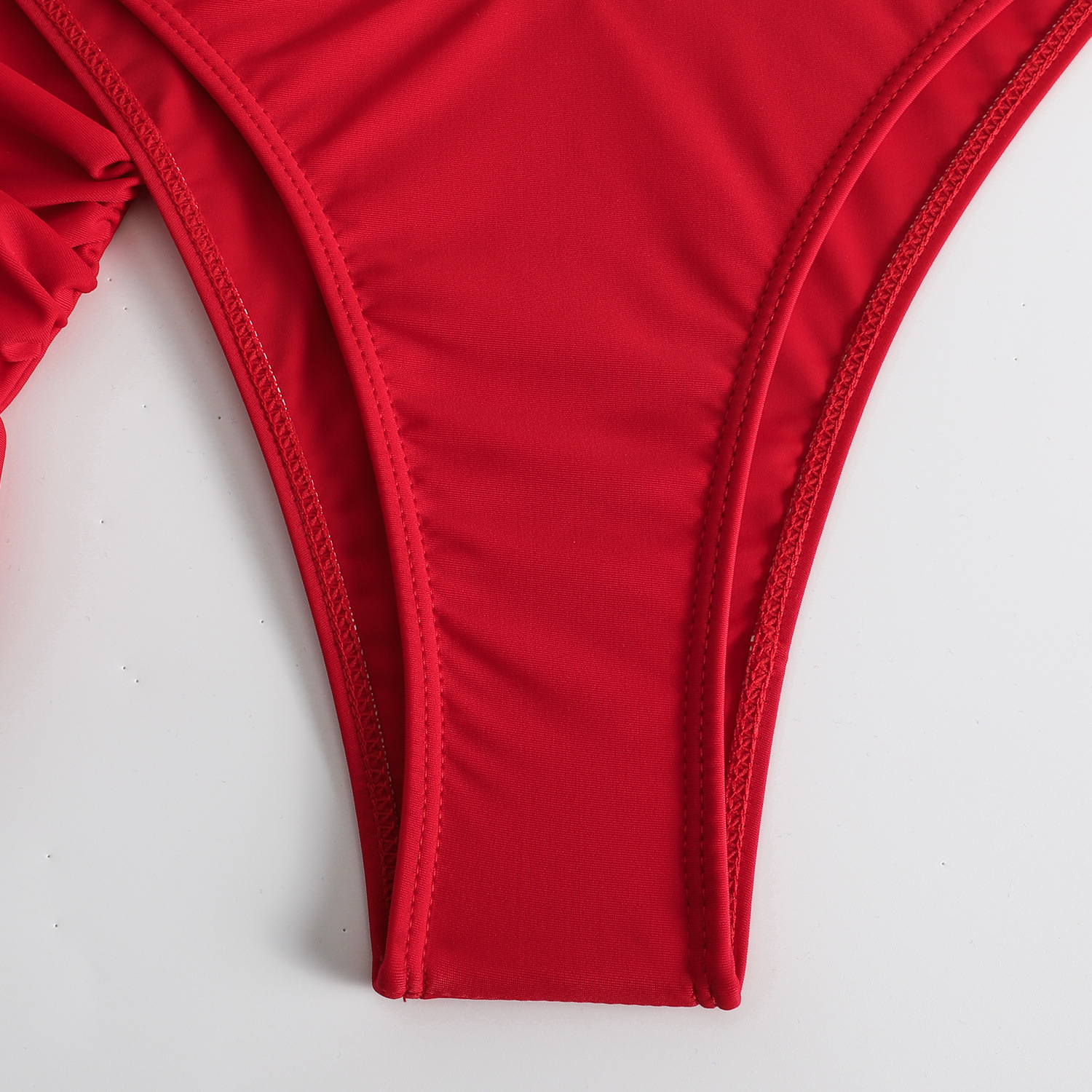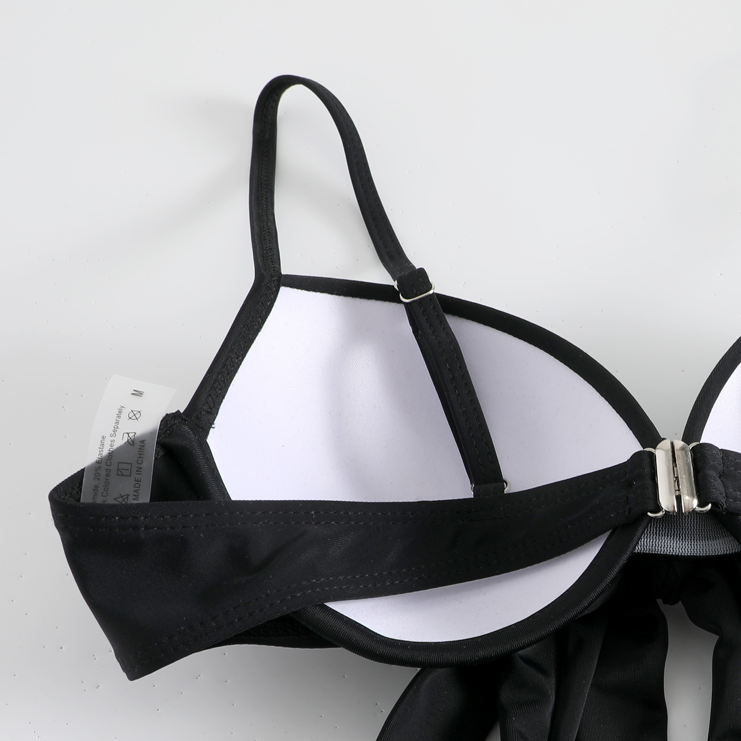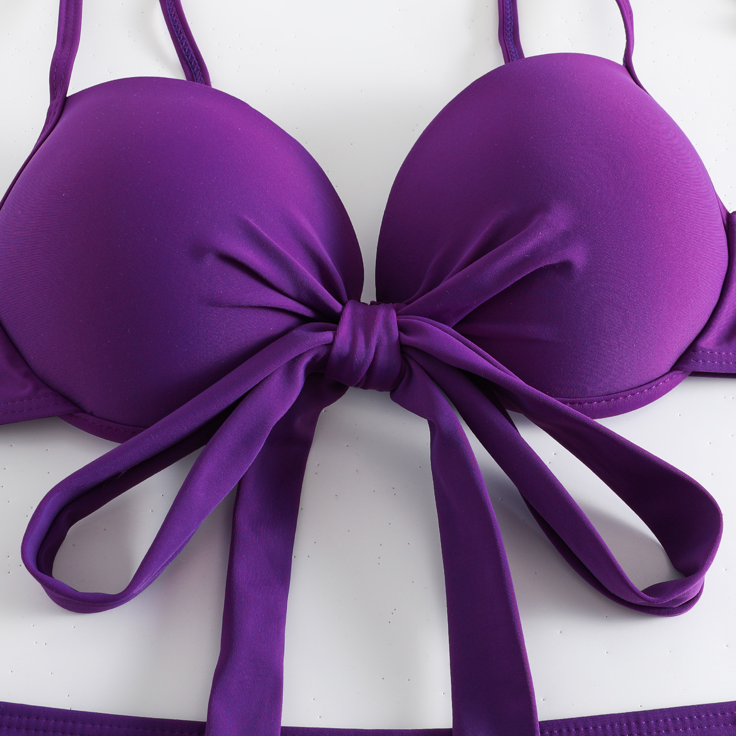 加工定制纯色分体泳衣女三件套欧美性感聚拢紧身绑带泳装性感紧身