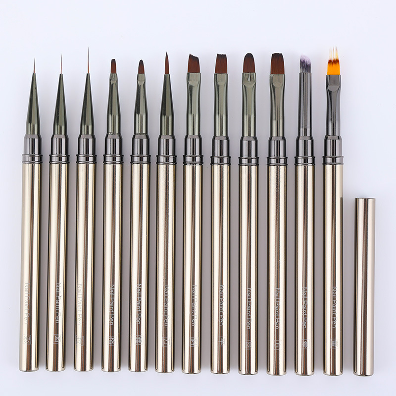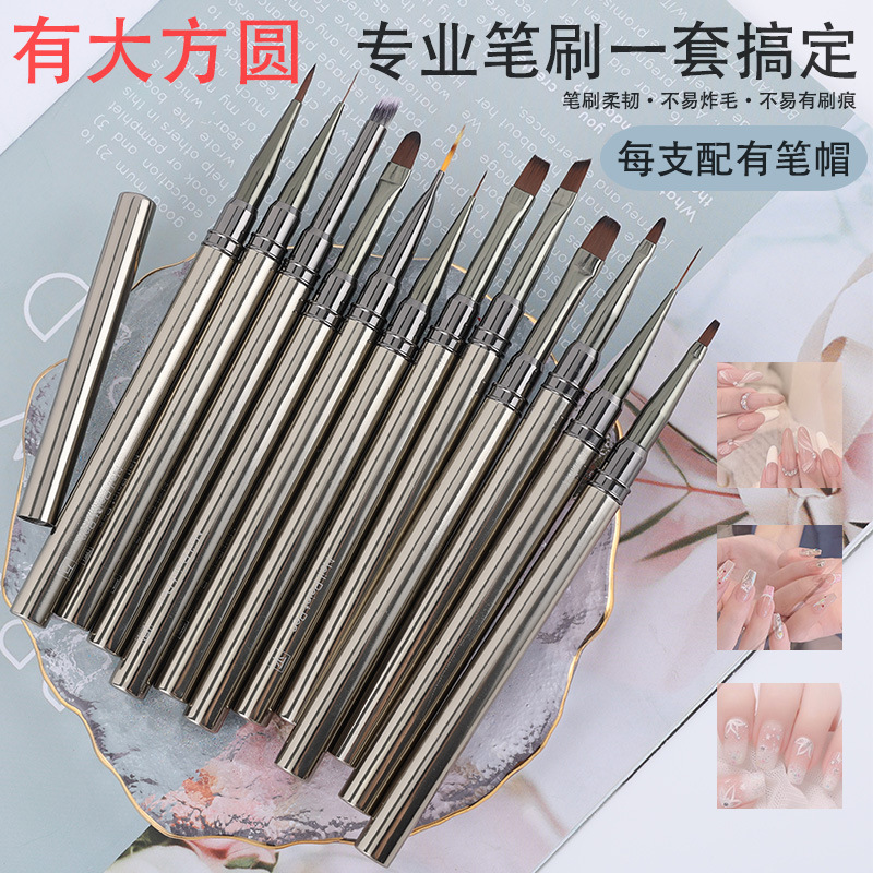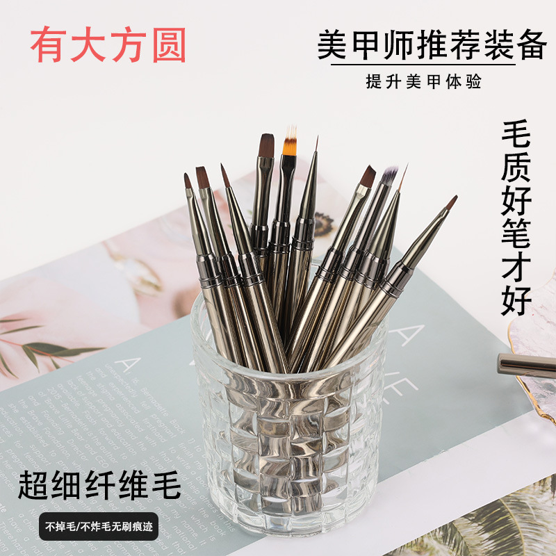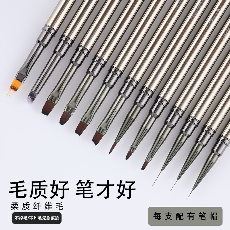枪黑金属杆美甲笔刷套装彩绘拉线画花光疗渐变美甲笔批发工厂直发