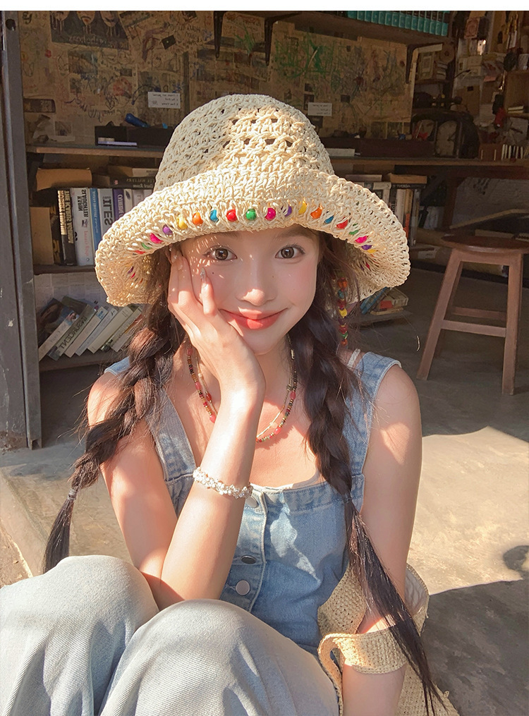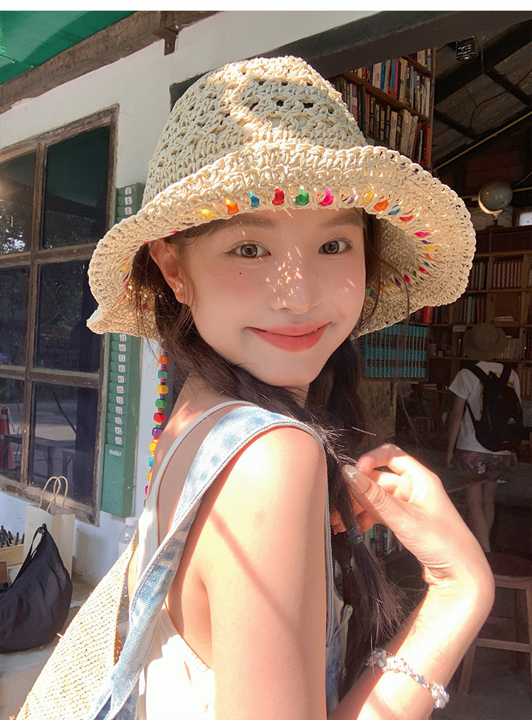 韩系ins彩色串珠草编渔夫帽夏季海边度假防晒遮阳草帽可折叠帽子,批发价,价格:5.5,厂家直销,韩系ins彩色串珠草编渔夫帽夏季海边度假防晒遮阳草帽可折叠帽子,免费拿样。