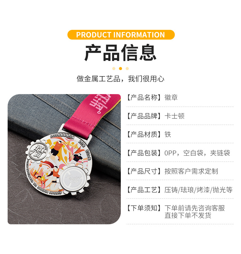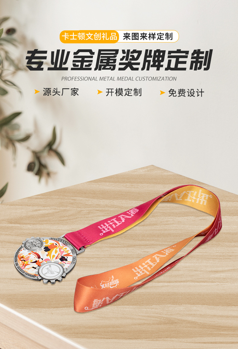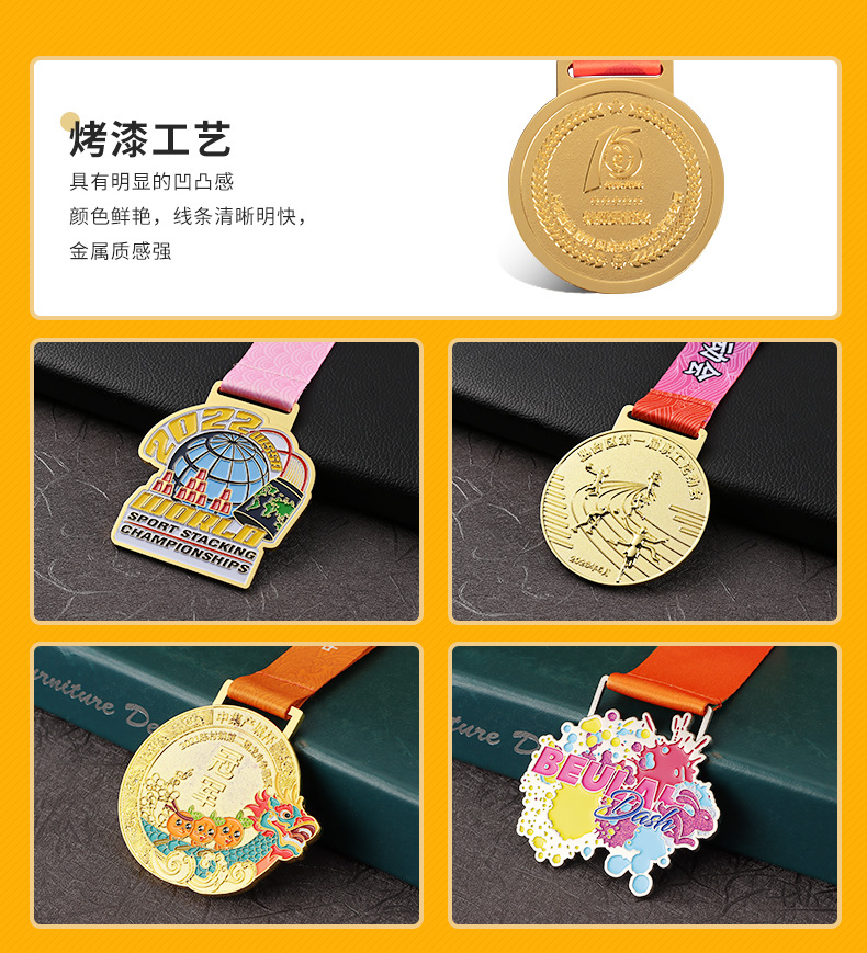 奖牌马拉松烤漆 圆形运动会有带子金属颁奖奖牌 跑步比赛纪念品