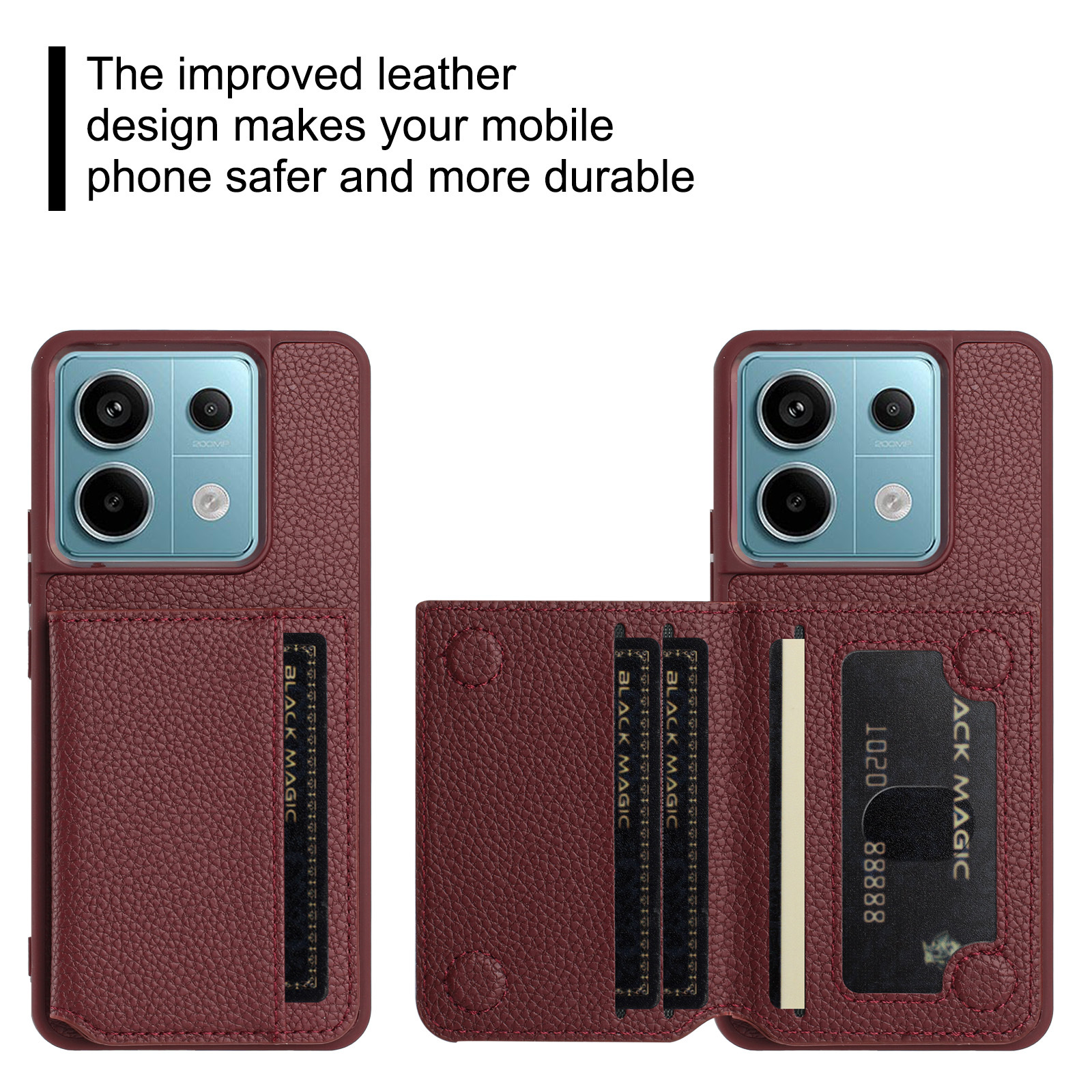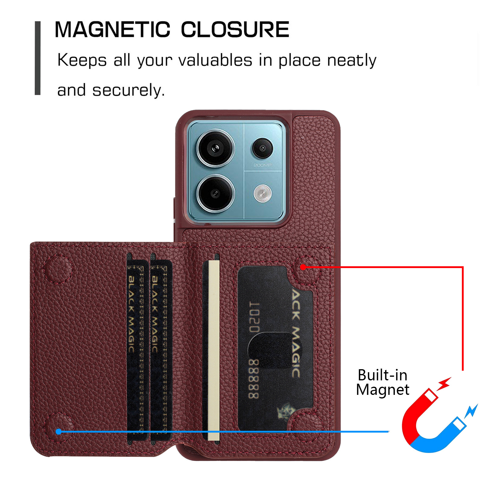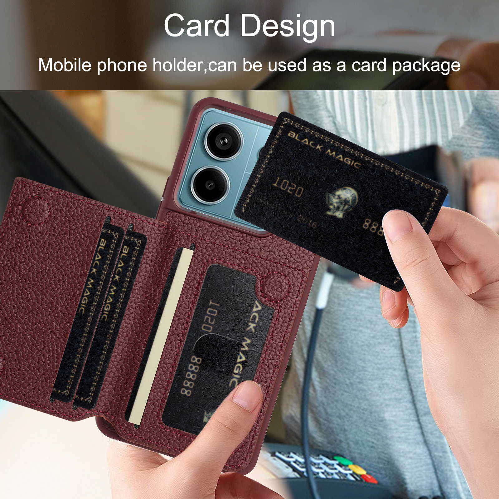 适用红米NOTE 11S手机套note13防摔卡包荔枝纹手机壳肤感磁吸皮套