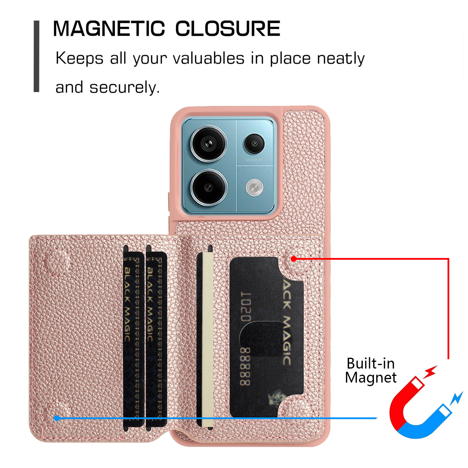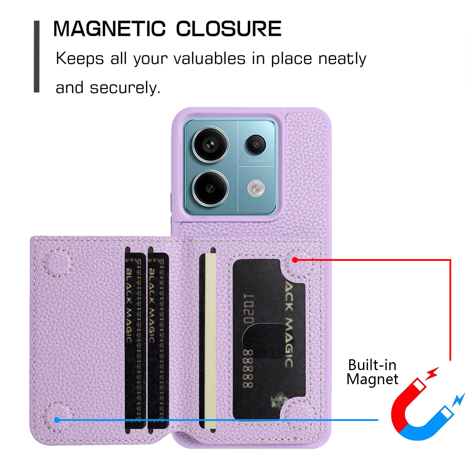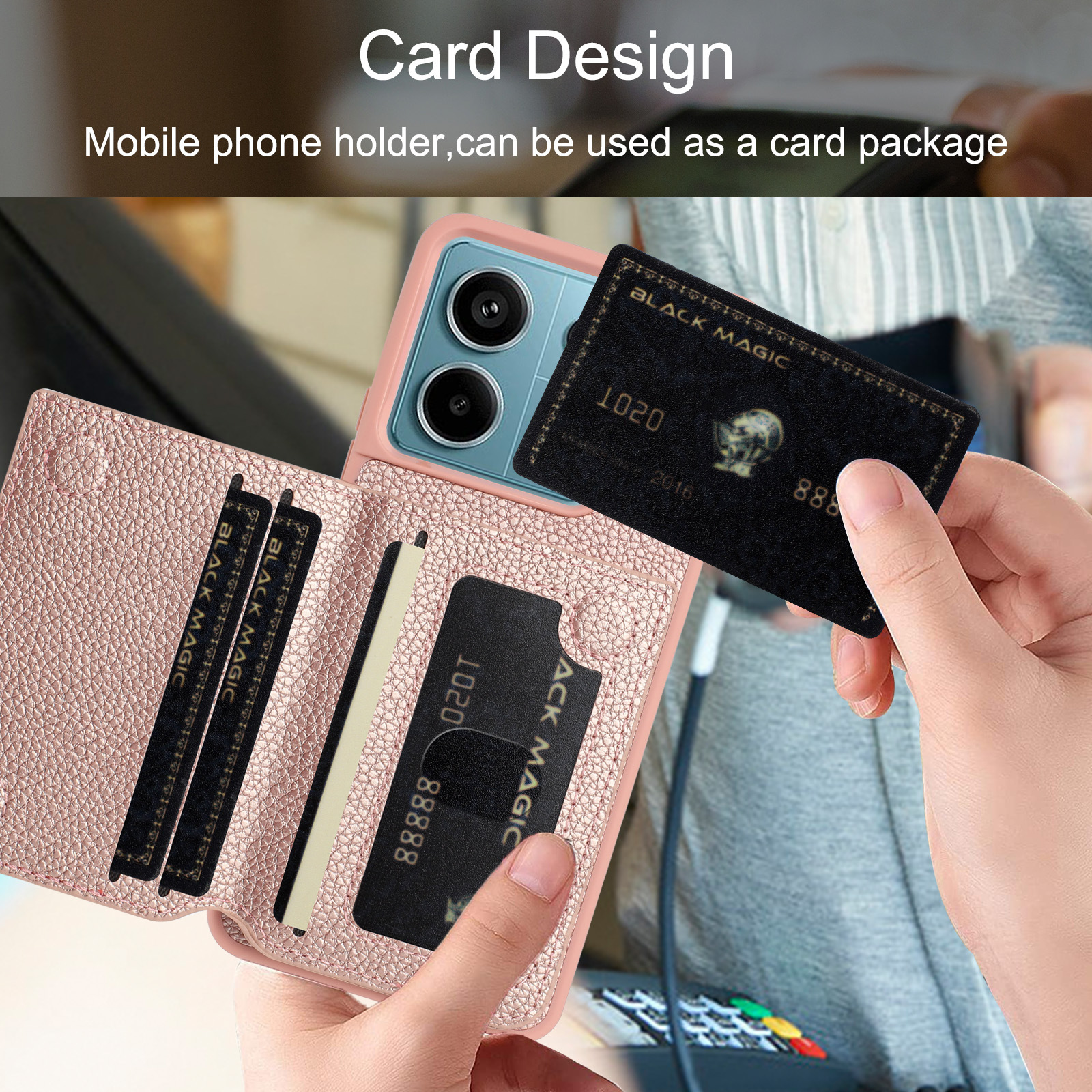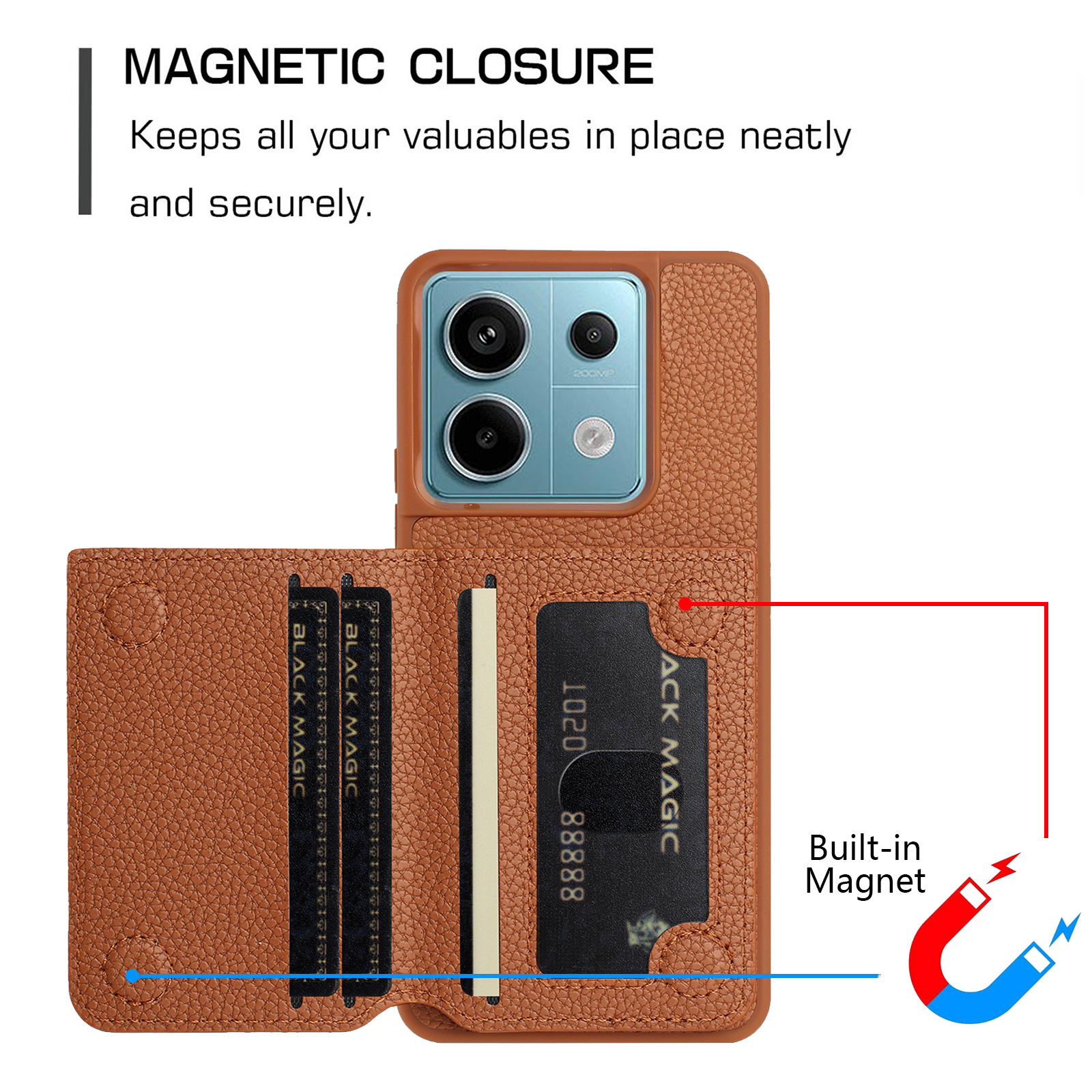 适用红米NOTE 11S手机套note13防摔卡包荔枝纹手机壳肤感磁吸皮套