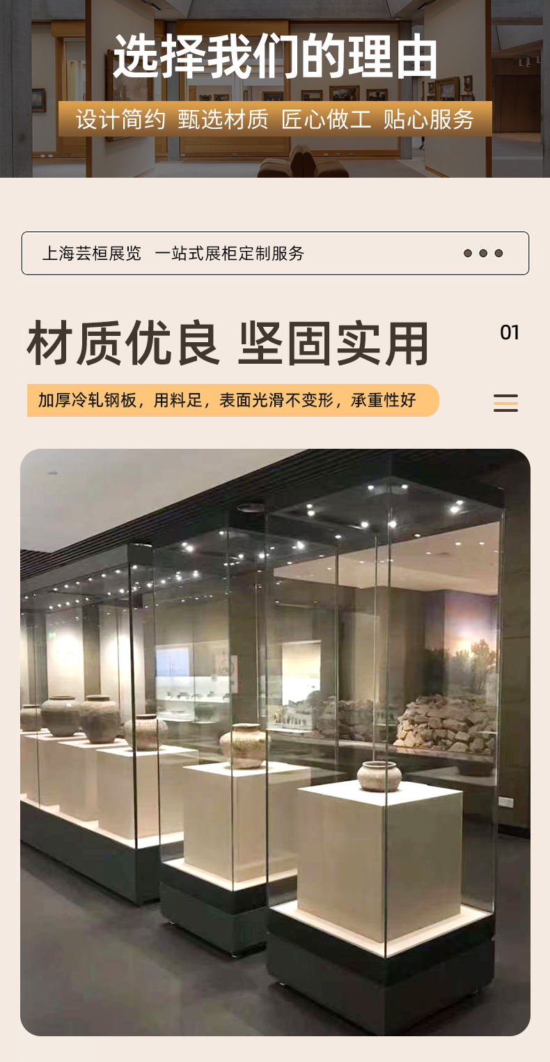 推荐理由:木质珠宝展柜博物馆展台陈列柜古董玉器文物玻璃展示柜产品独立柜