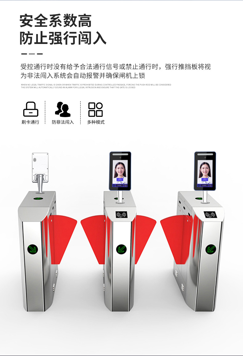 工厂供应人脸识别人行通道闸机不锈钢通道闸景区票务全高闸考勤机