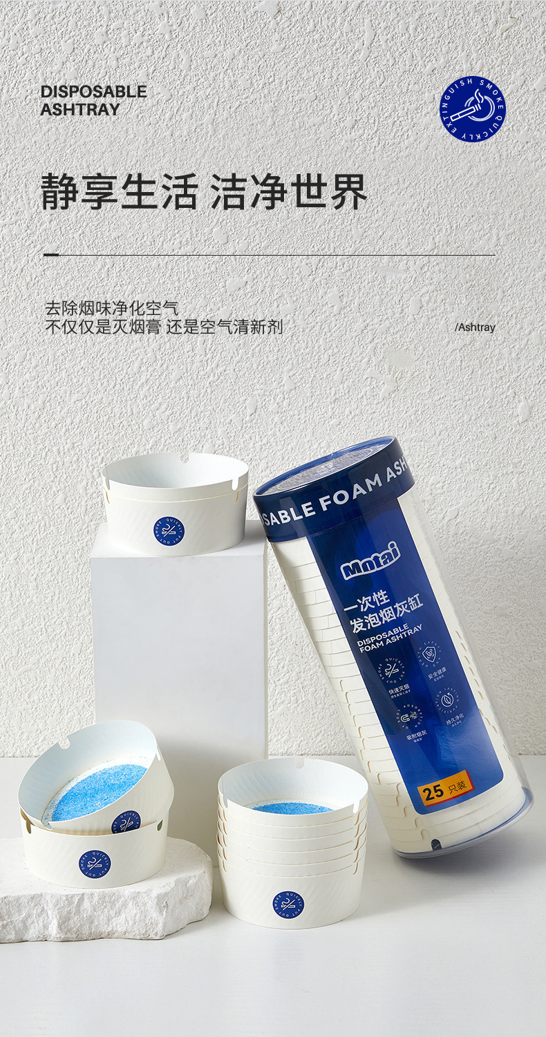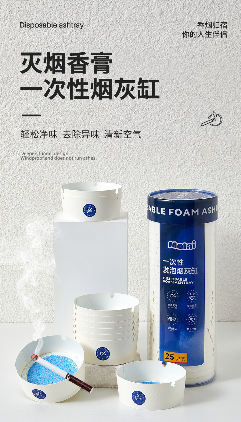 一次性发泡烟灰缸快速灭烟吸附烟灰健康安全持久净化便捷