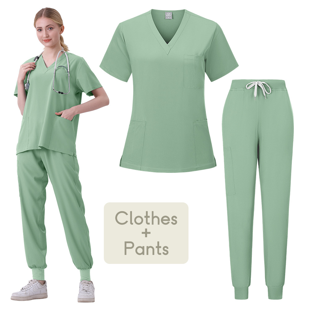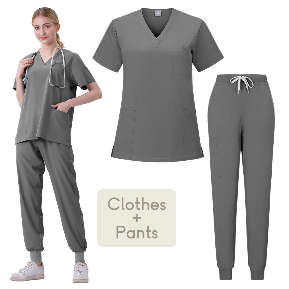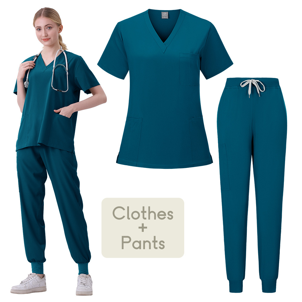 亚马逊欧美热销弹力医生护士工作制服洗手衣手术衣手术服V领套装