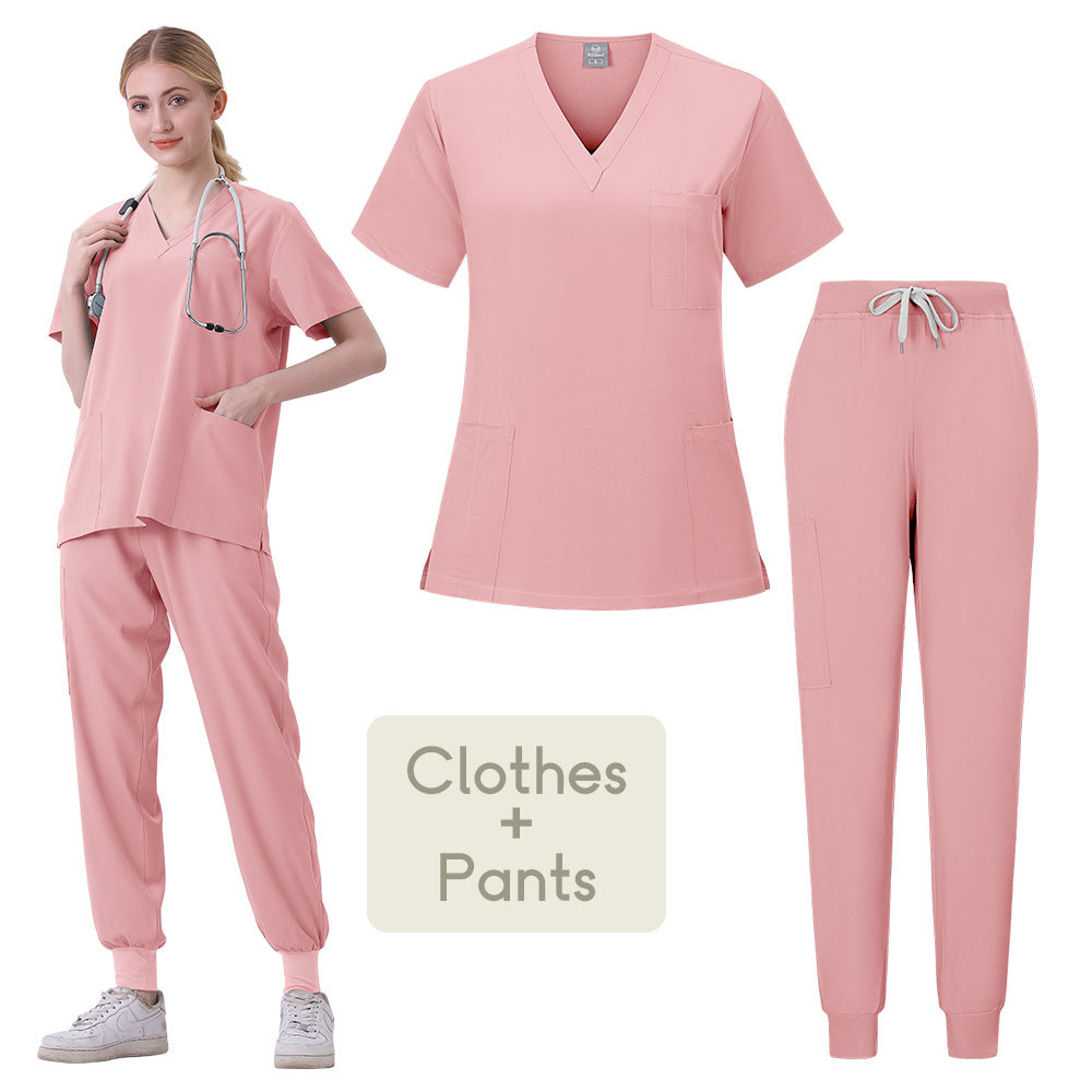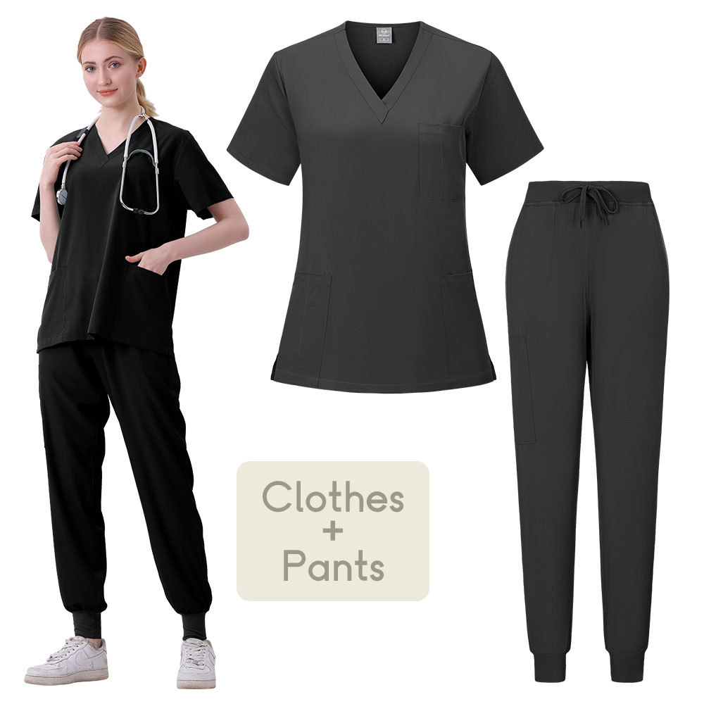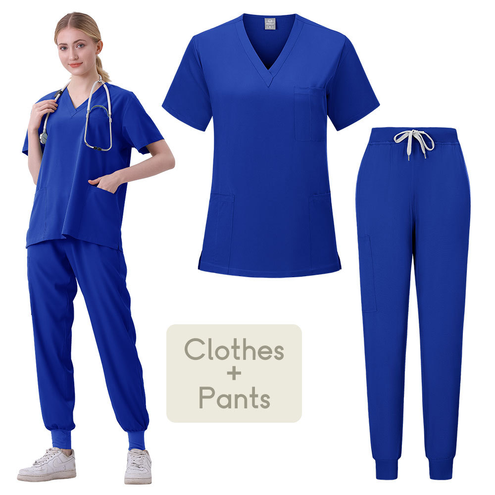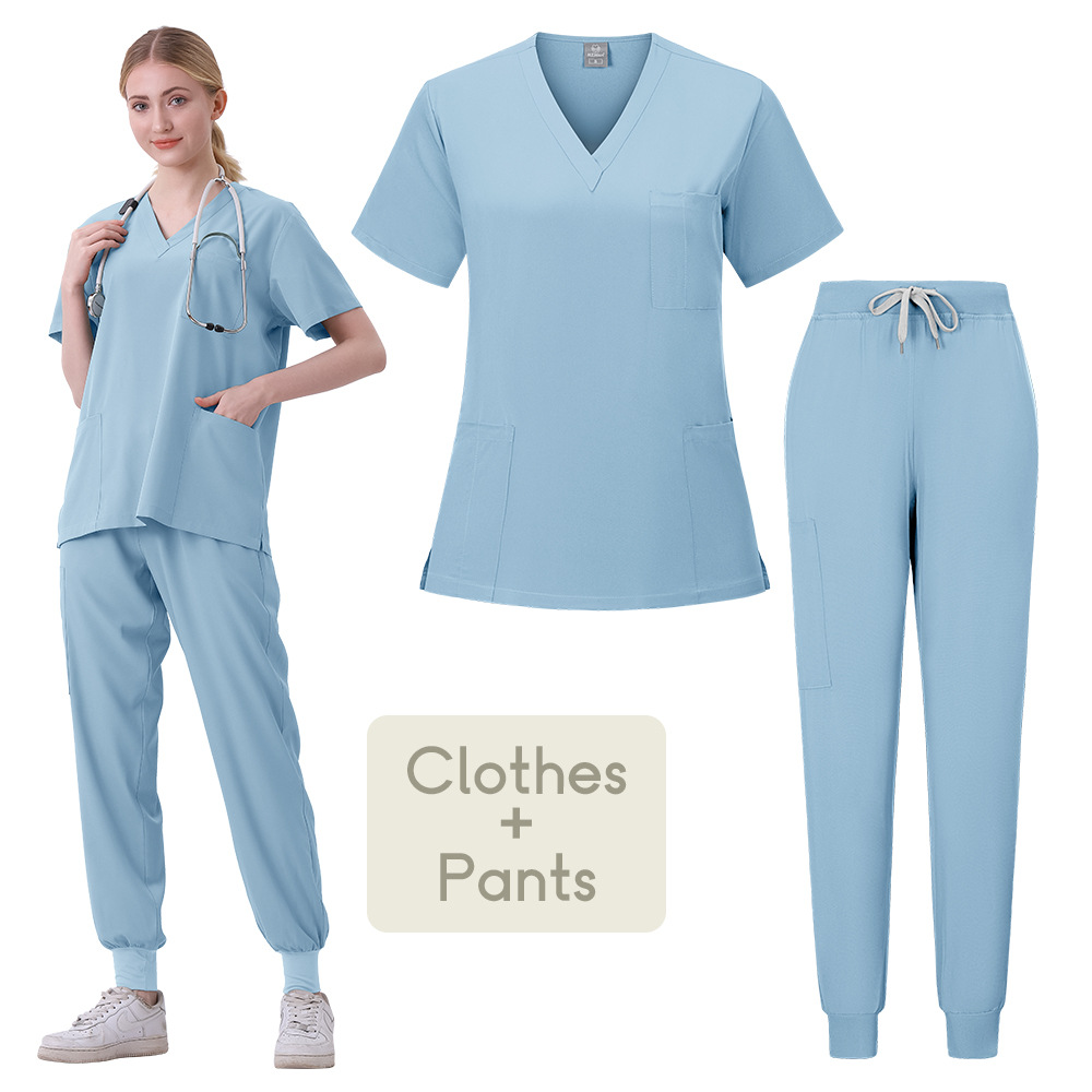 亚马逊欧美热销弹力医生护士工作制服洗手衣手术衣手术服V领套装