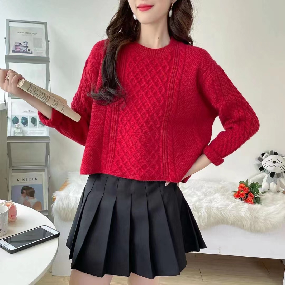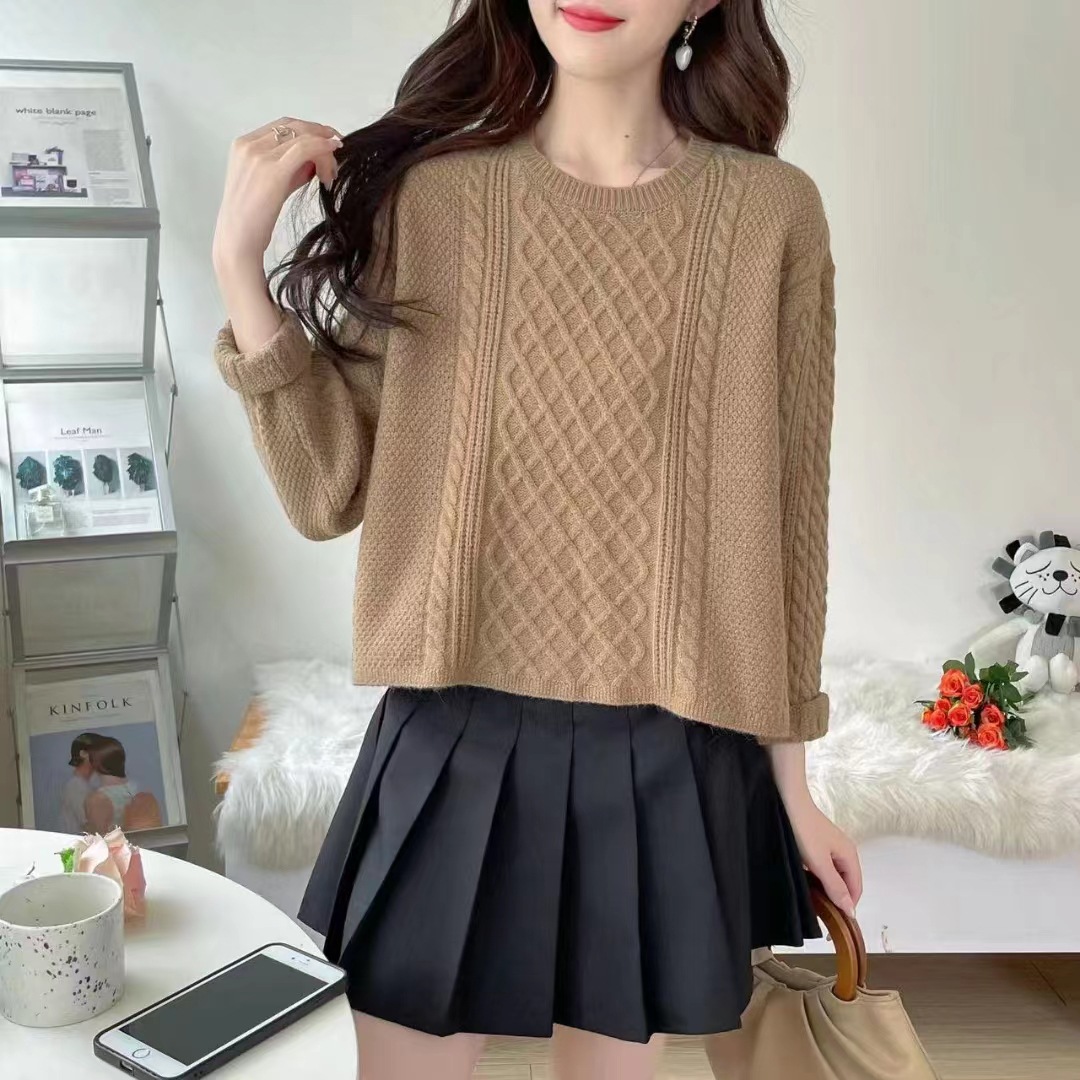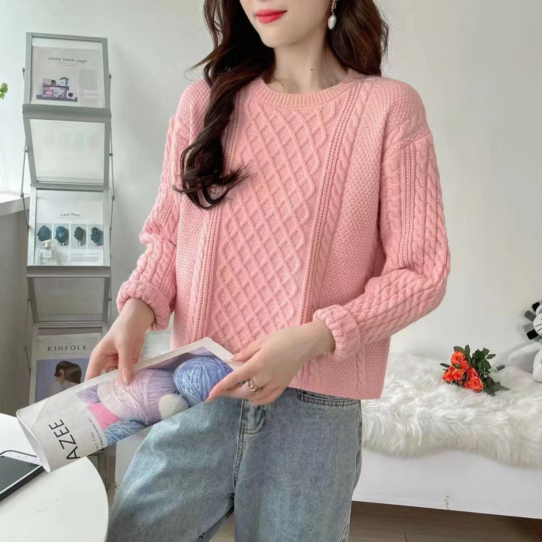 圆领纯色2023秋冬新款针织衫上衣外穿宽松套头修身纯色麻花外套女,批发价,价格:28,厂家直销,圆领纯色2023秋冬新款针织衫上衣外穿宽松套头修身纯色麻花外套女,免费拿样。